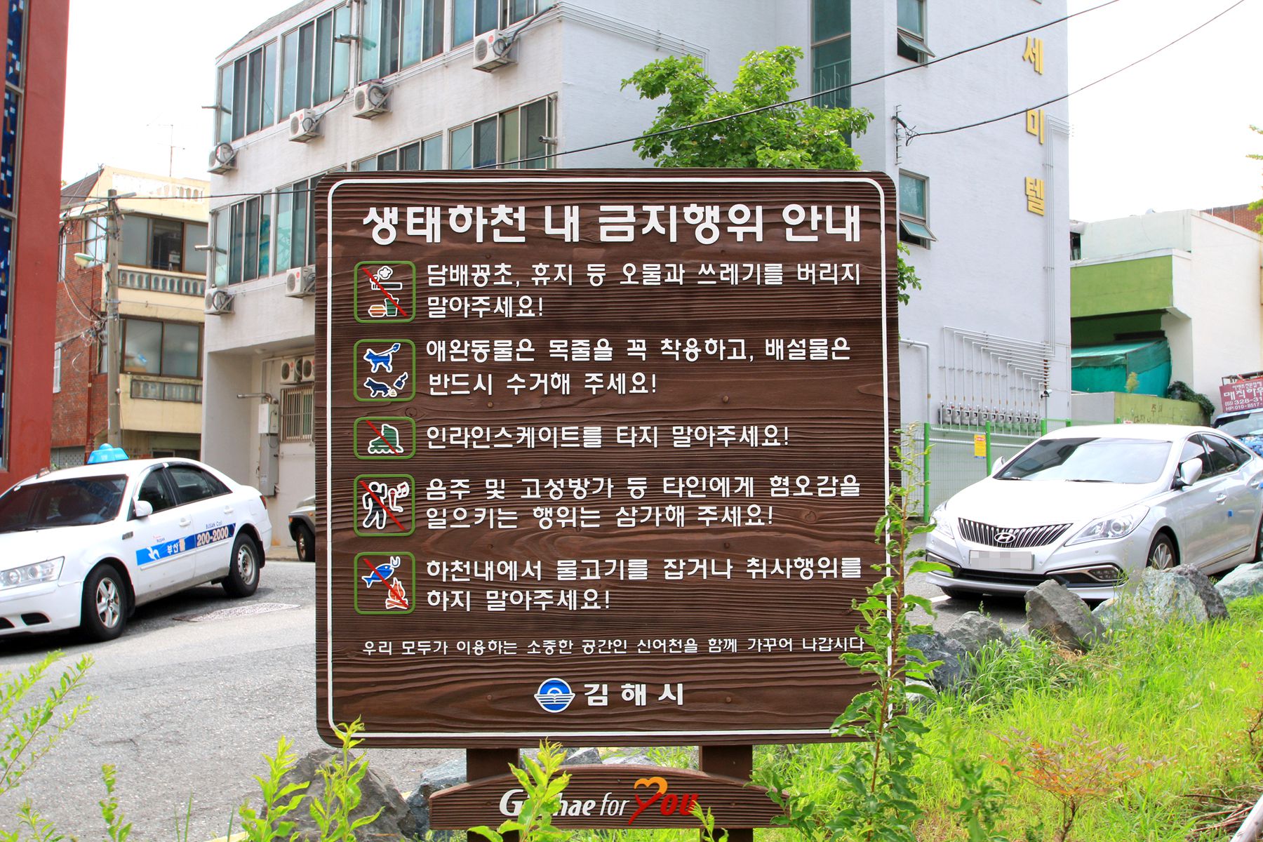 김해시에서 국비 등을 들여 신어천 생태하천 복원사업을 추진함으로써 2013년부터 자연형 생태하천으로 새롭게 태어난 신어천은