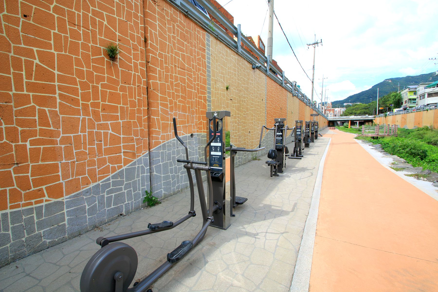산책로 중간에는 운동시설물이 있어 간단한 운동을 하기도 좋고,