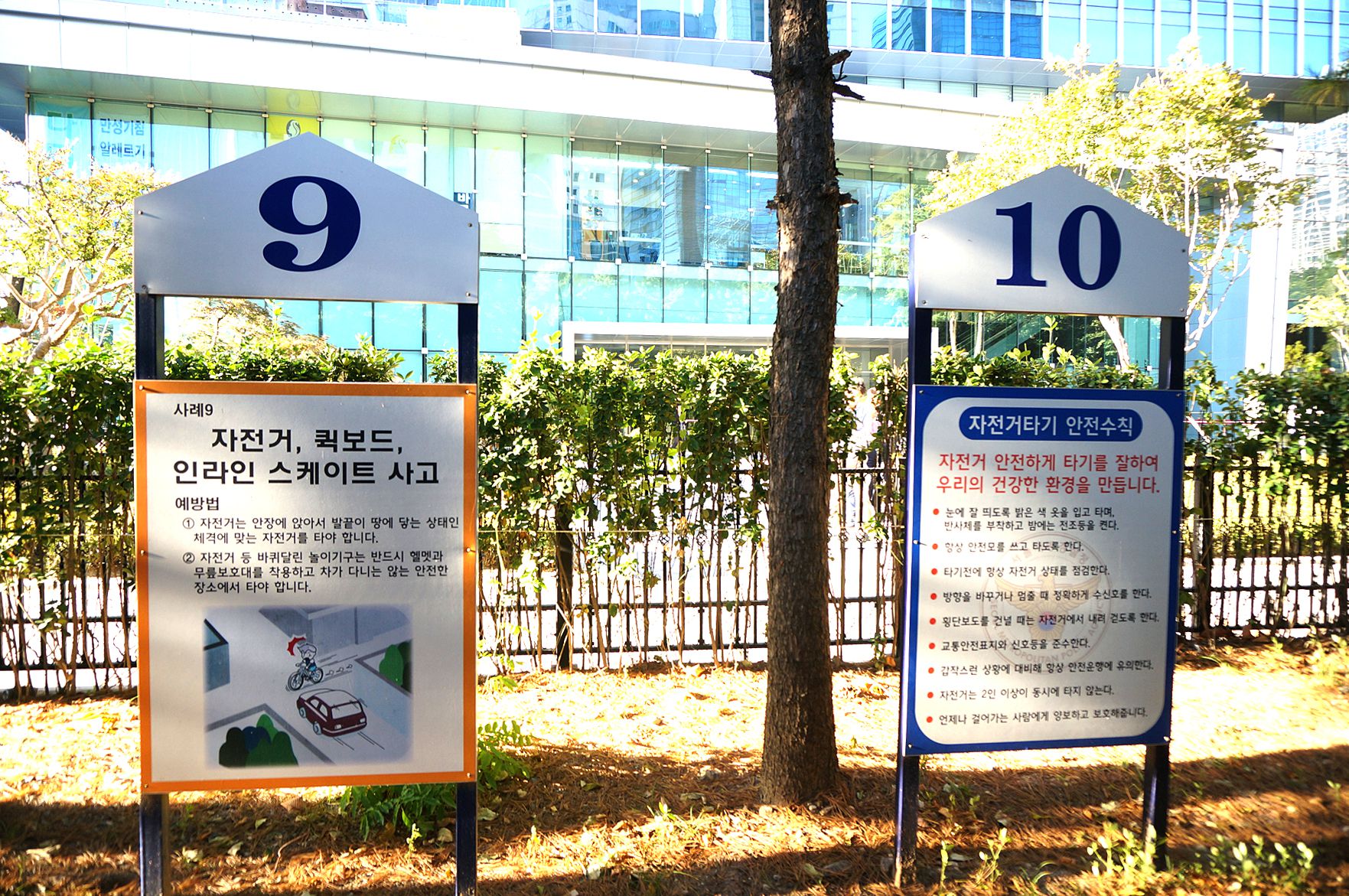 표지판은 자전거를 타면서 자주 일어나는 사고별, 유형별로 자세히 안내되어 있어