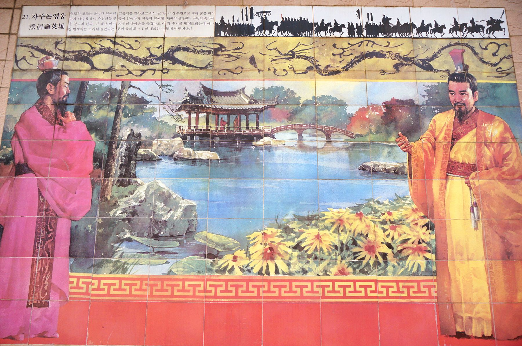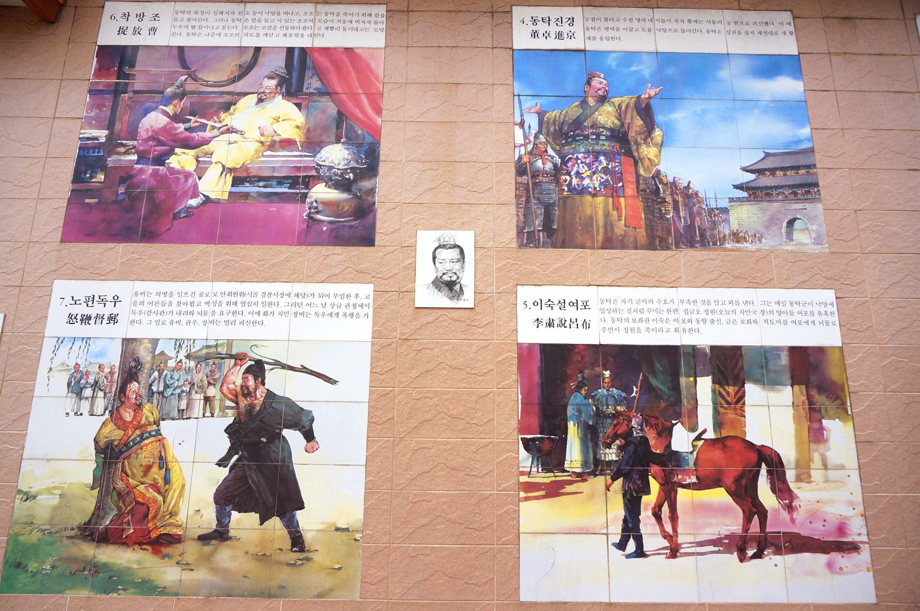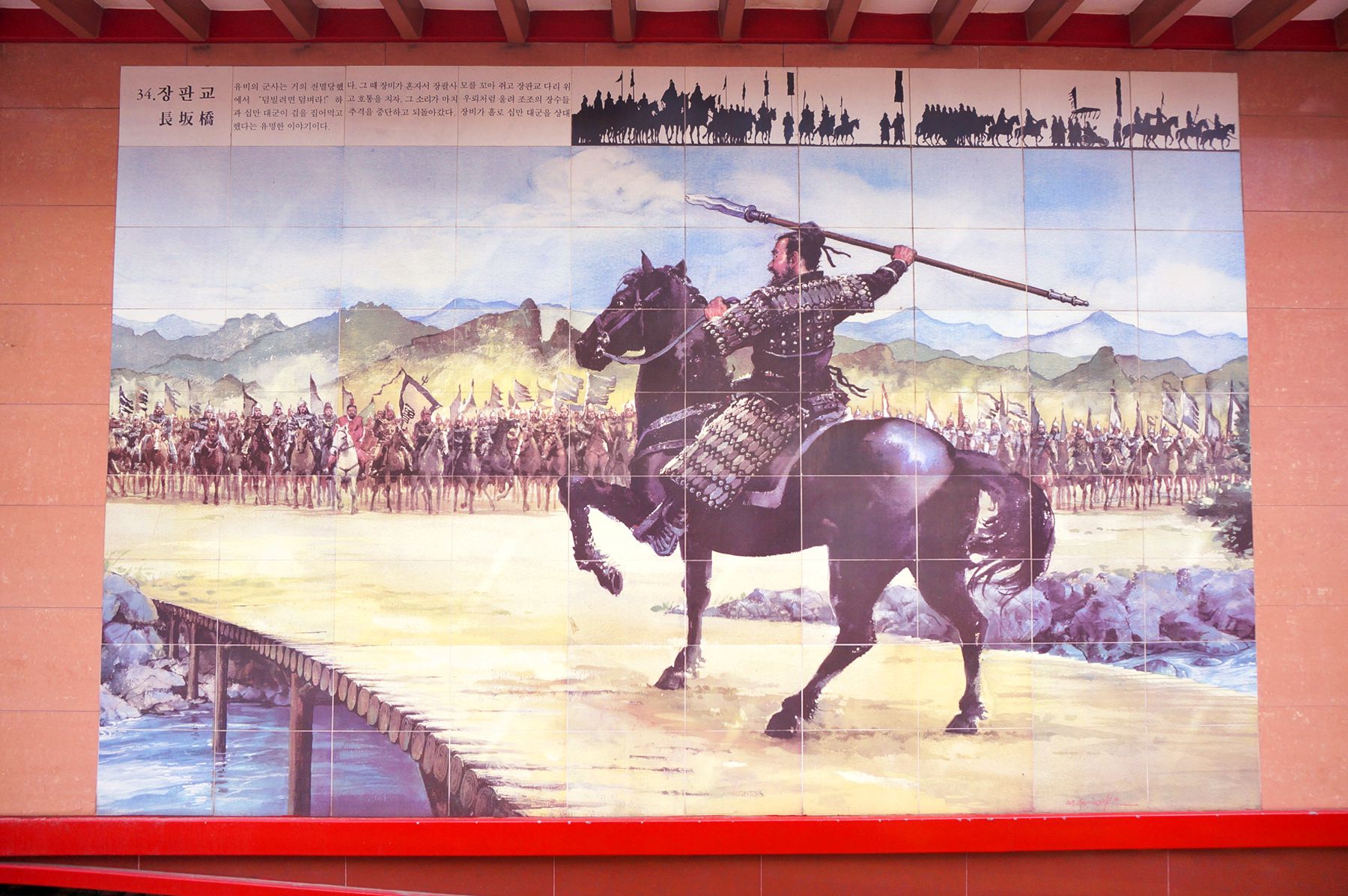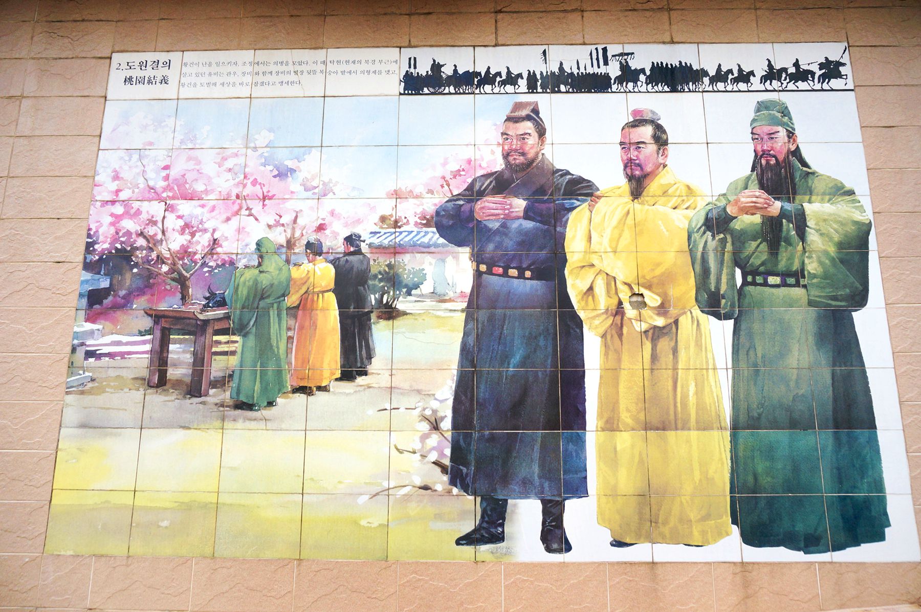 유비, 관우, 장비, 제갈공명 등의 이야기와 역사를 소개한 150m의 대형 벽화로