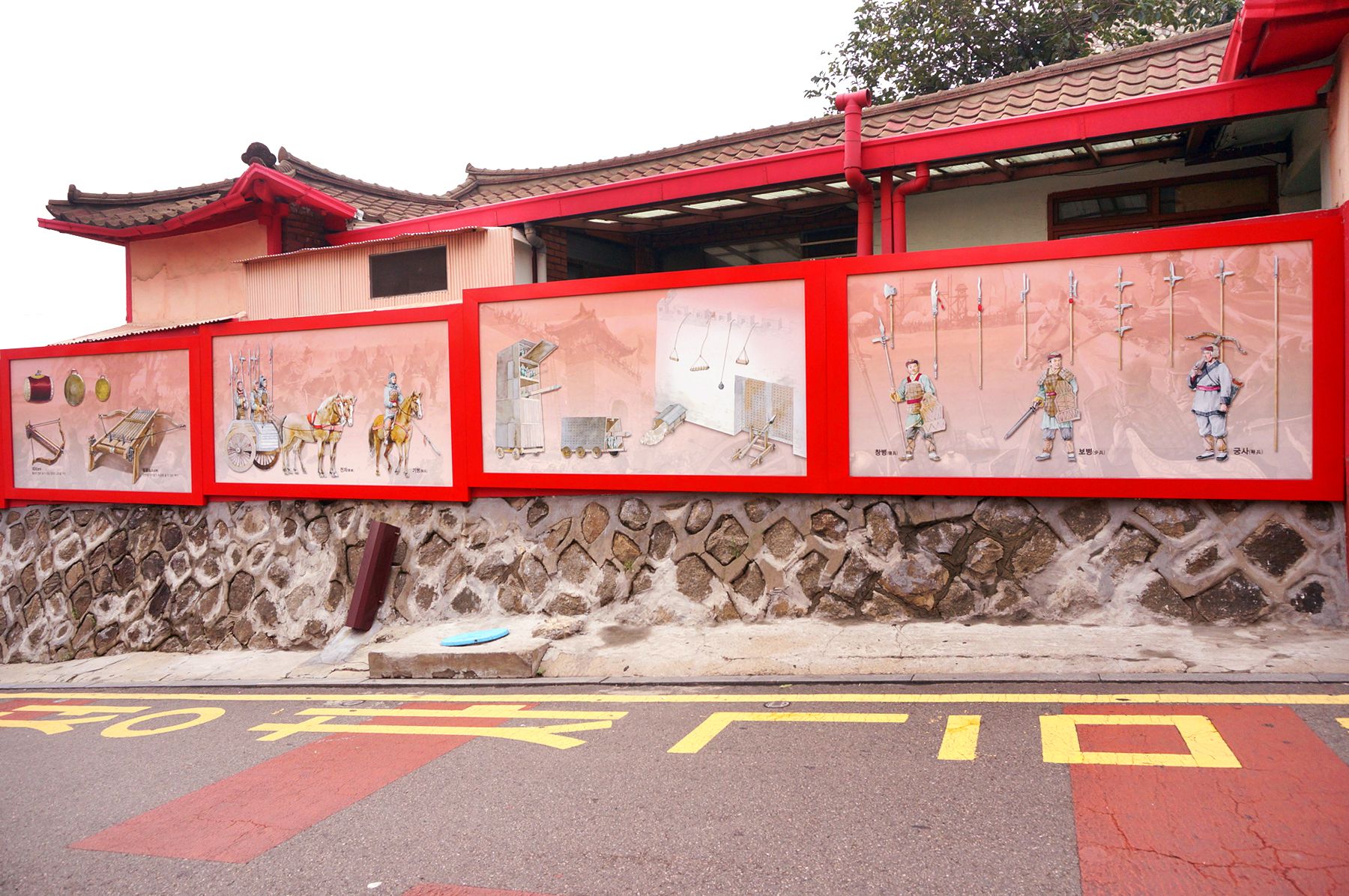 벽화들을 따라 걸어가면 중간쯤 삼국지 포토존이 있어 재미있는 사진으로 하나의 추억거리를 만들어보는 것도 좋습니다^^