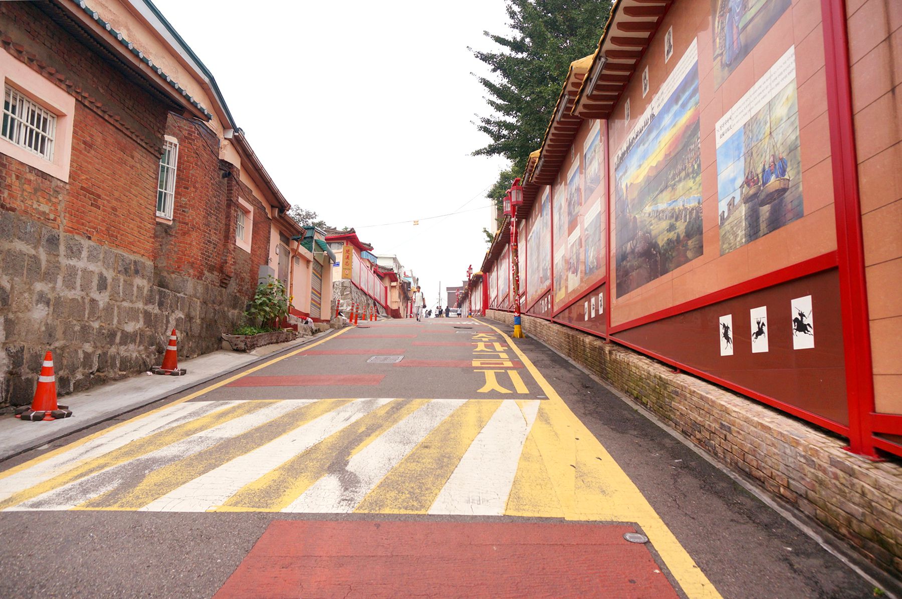 청일 조계지 계단을 올라가 밑으로 난 길 양쪽 벽면에 그려진 삼국지 명장면 80여개를 감상할 수 있는 삼국지 벽화거리를 소개합니다.