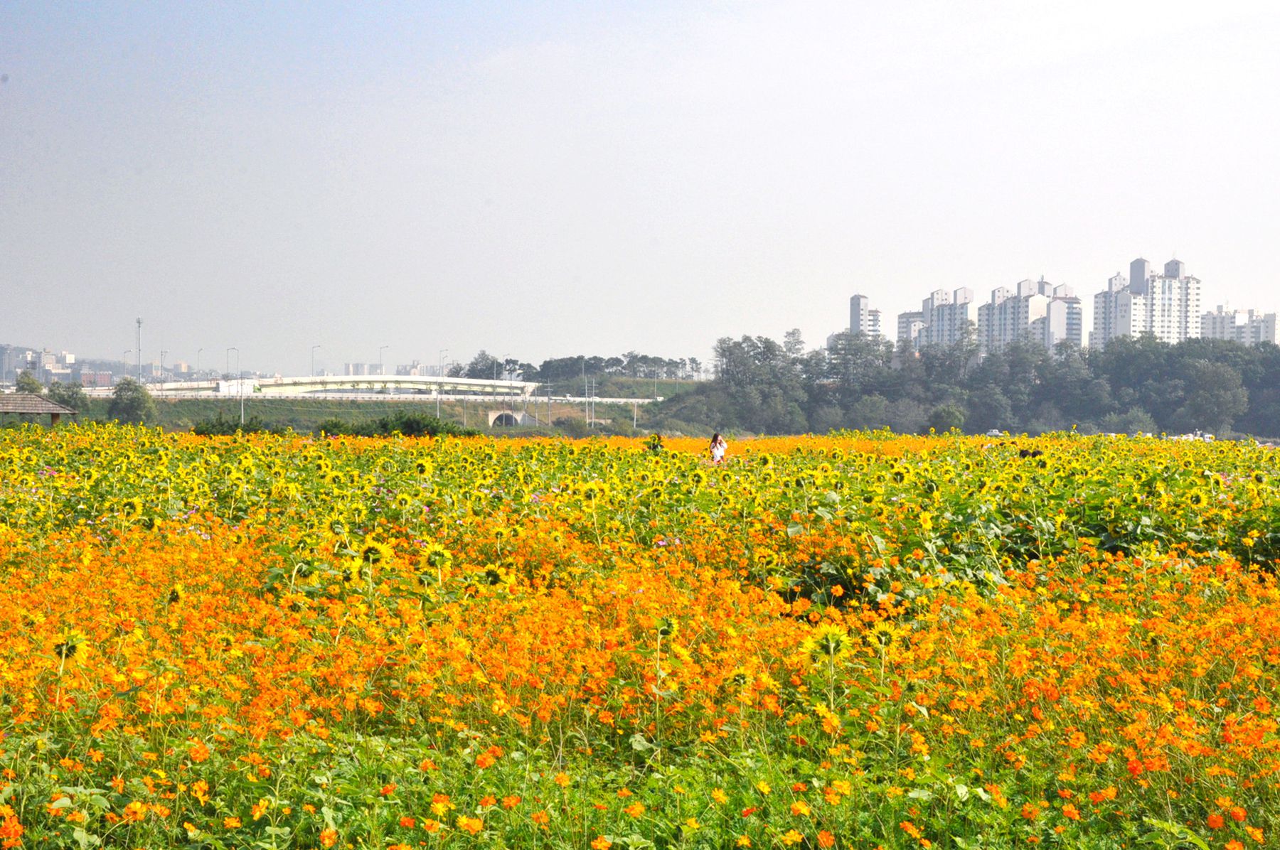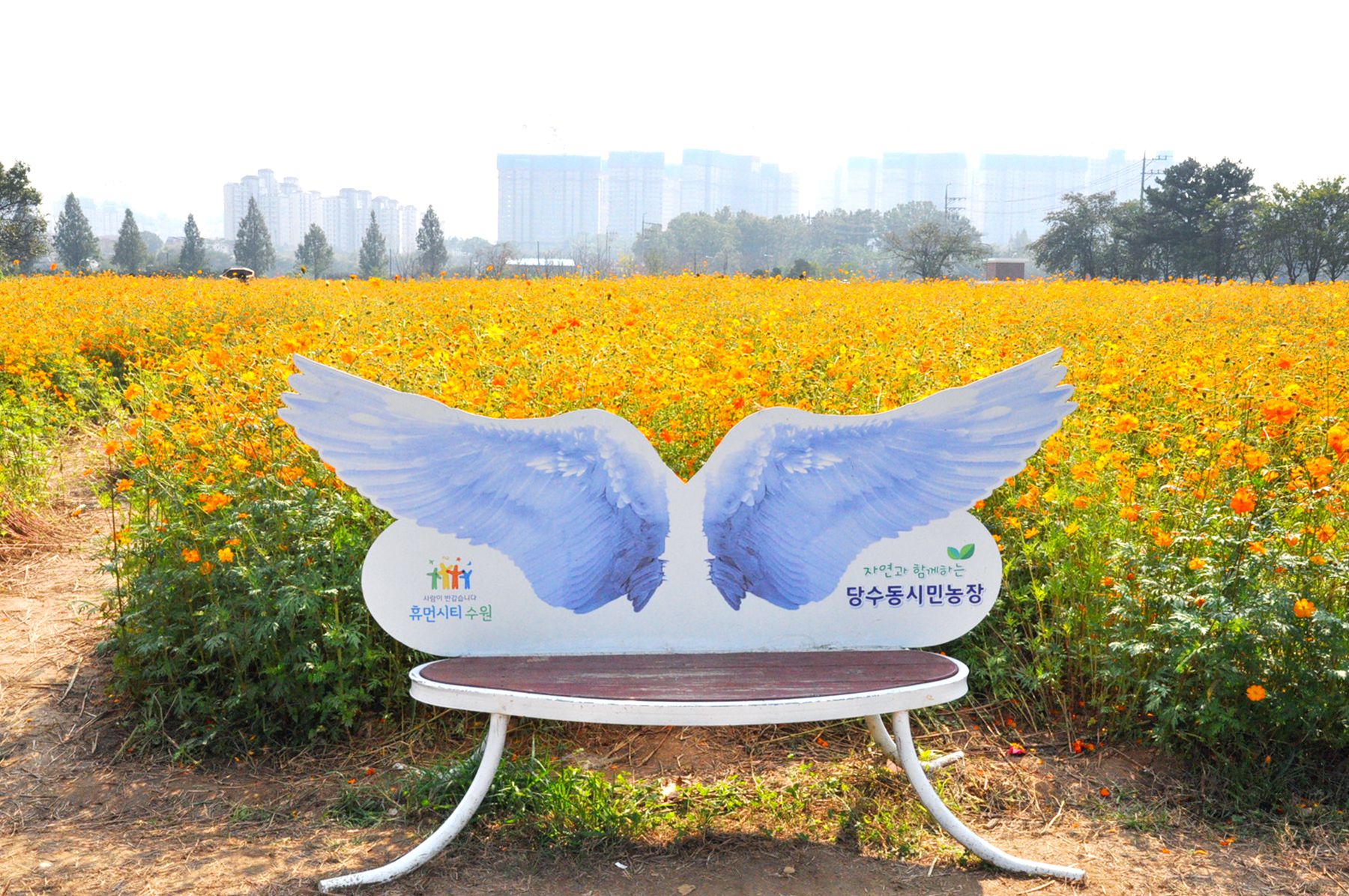 가을이면 코스모스와 메밀꽃 등 계절꽃이 대단지로 조성되어 꽃나들이를 즐길 수 있는 수원의 명소랍니다^^