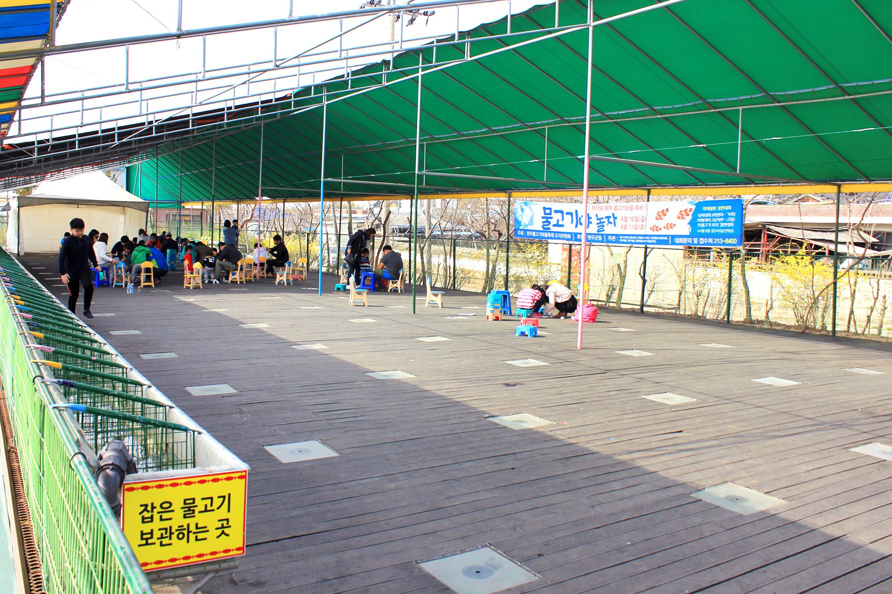 이서물고기마을에서는 살아움직이는 물고기를 직접 잡아볼 수 있는데요,