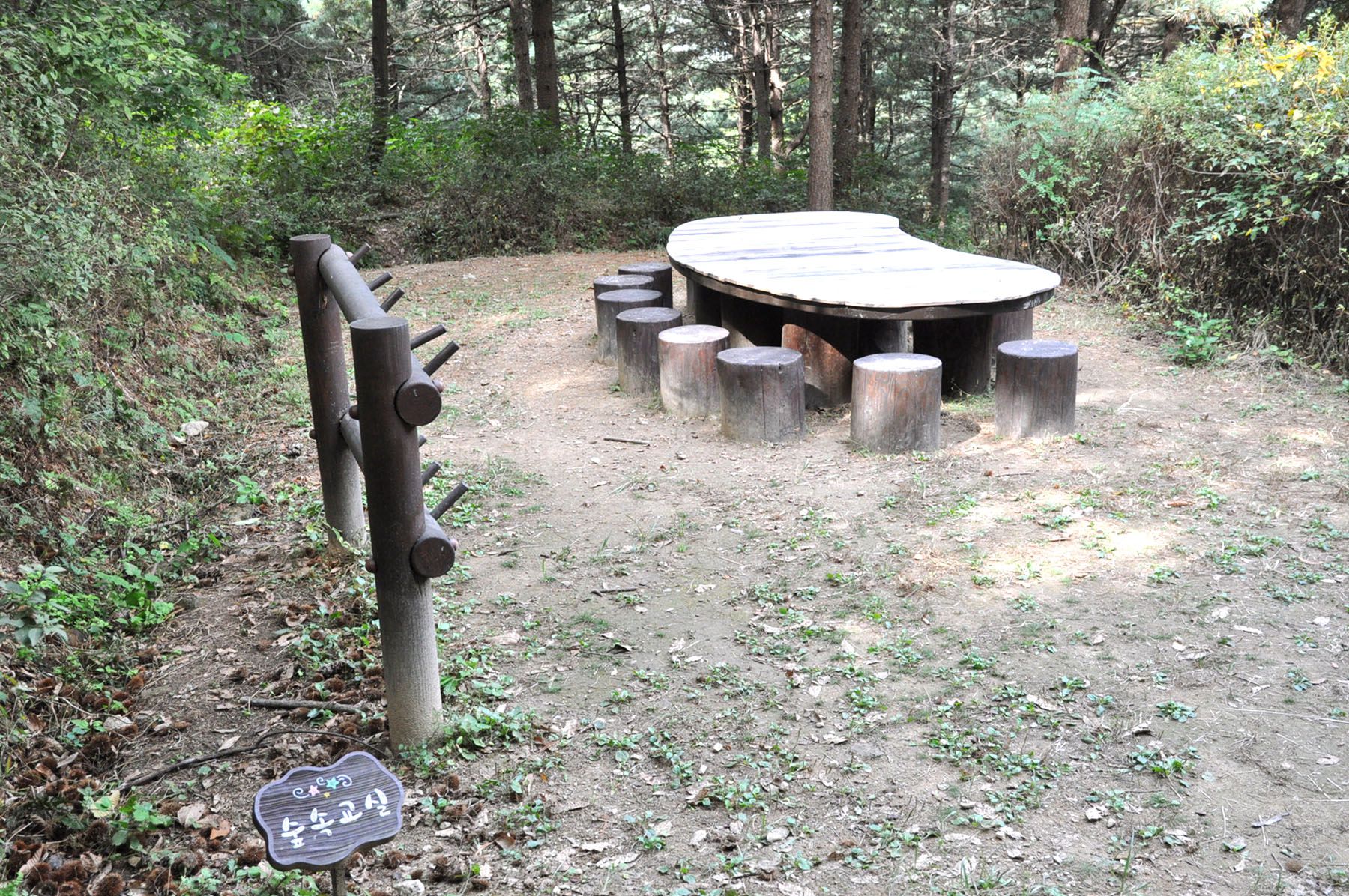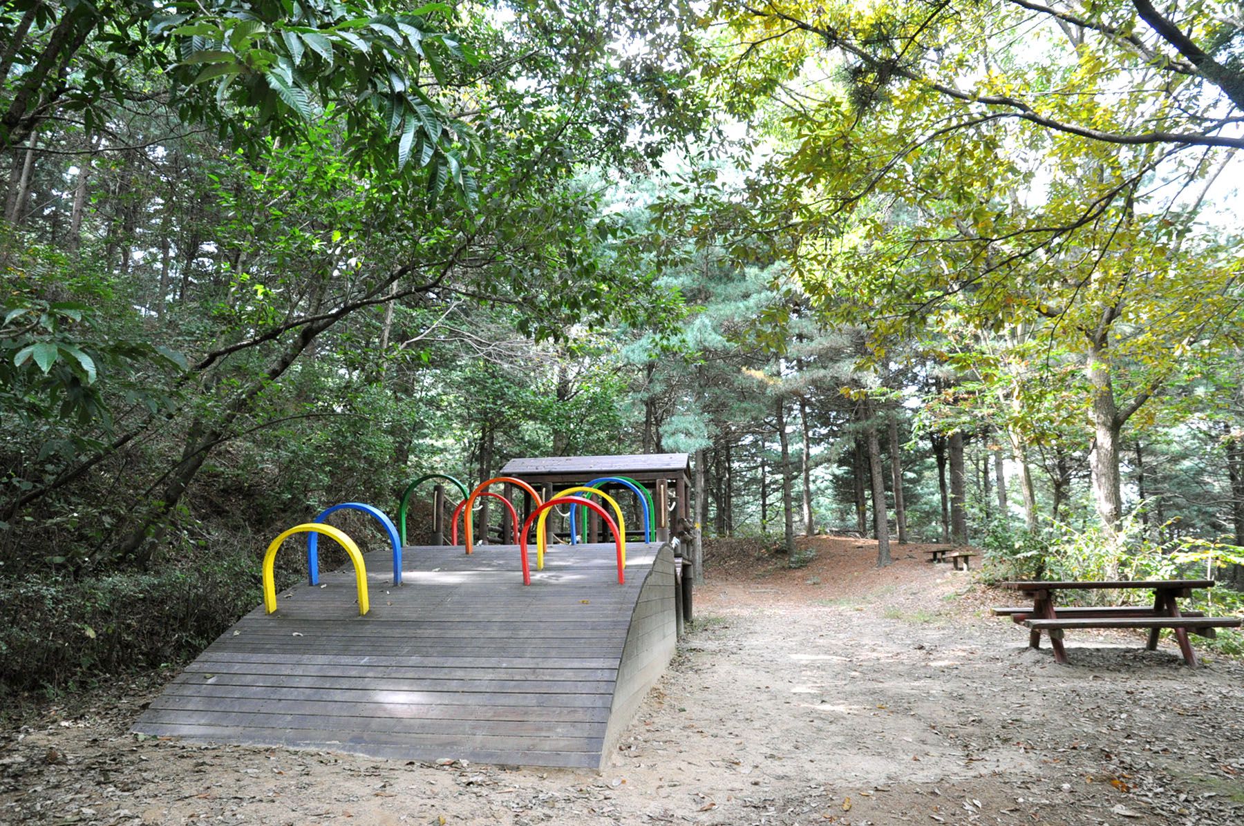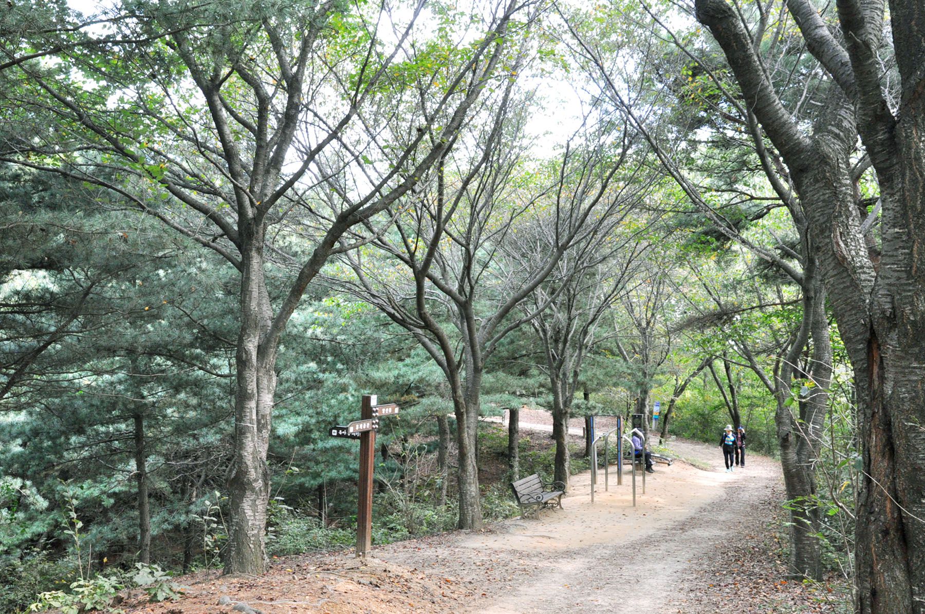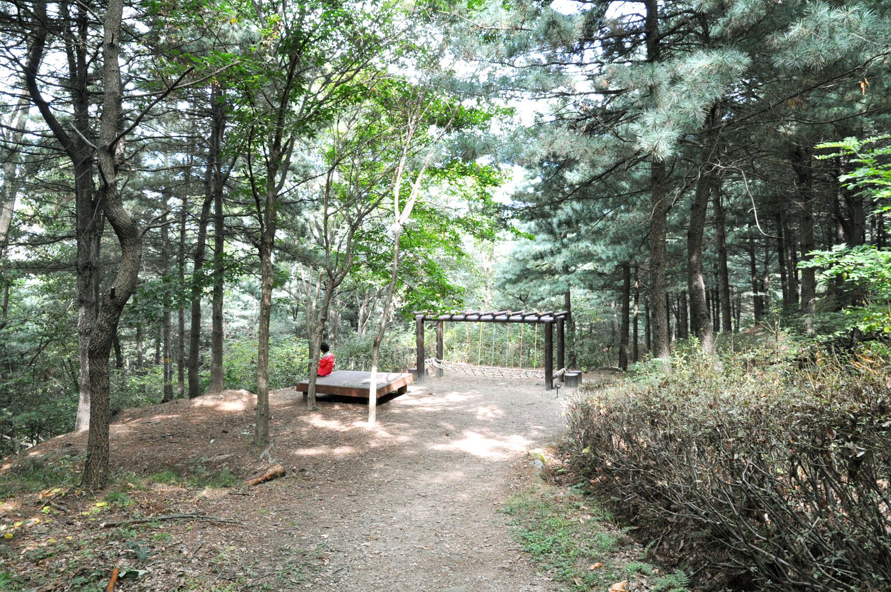 잣나무와 소나무 아래 펼쳐진 산림욕장에서는 휴식을 취할 수 있는 정자와 곳곳에 벤치들도 만나볼 수 있습니다.