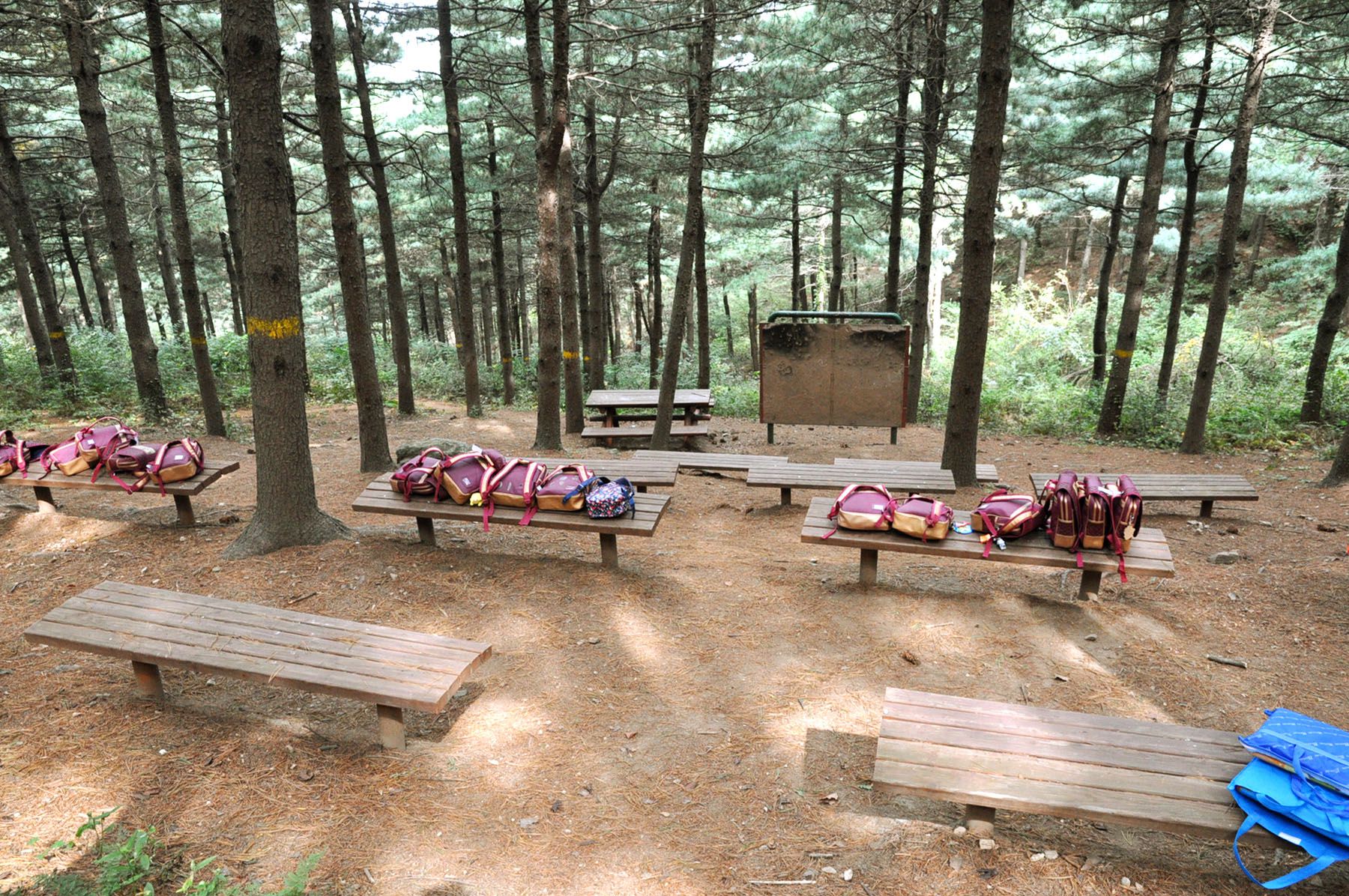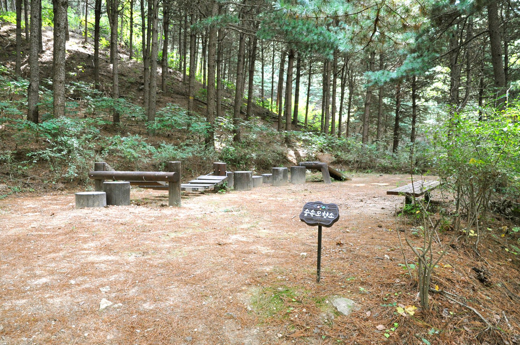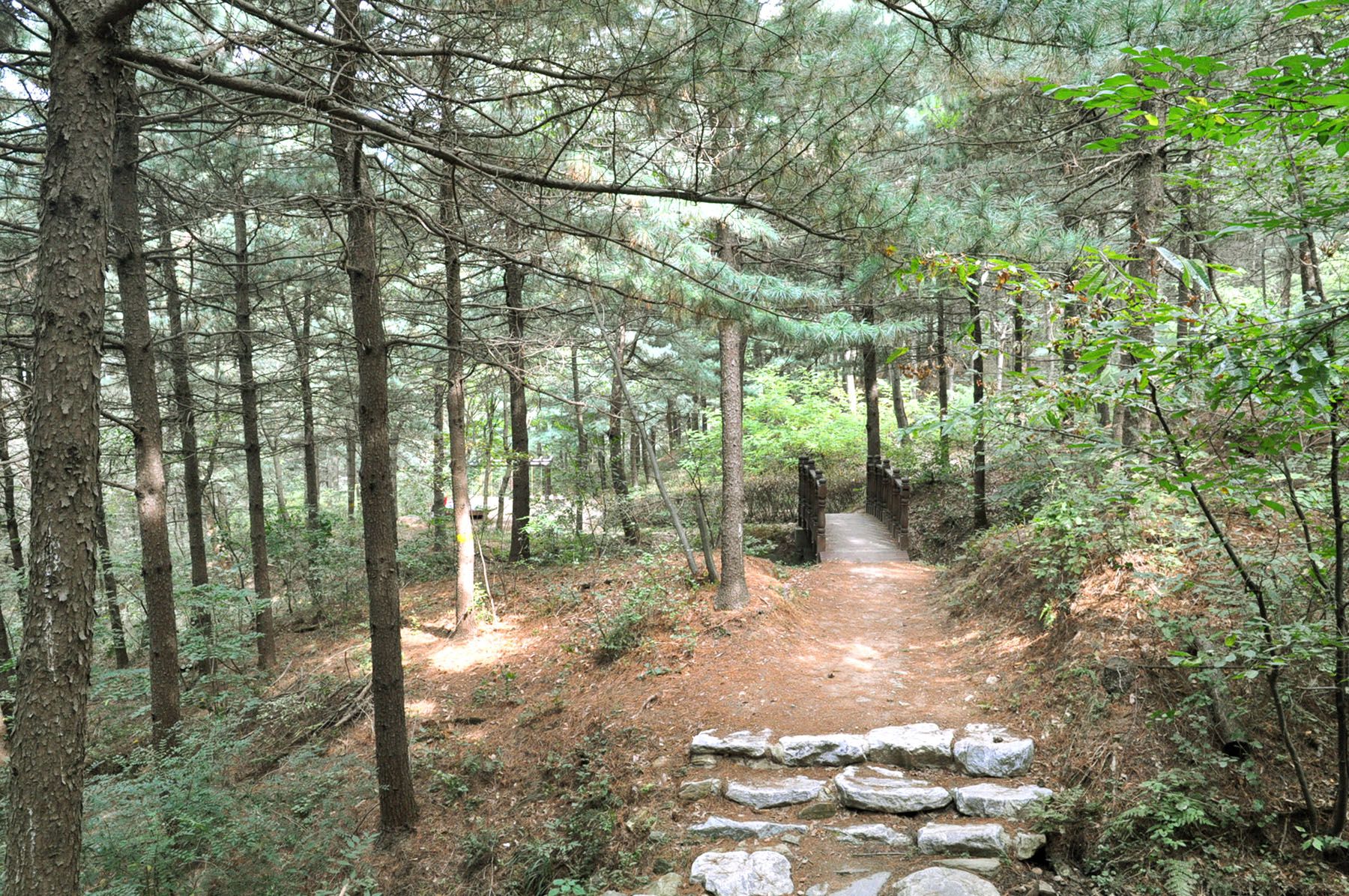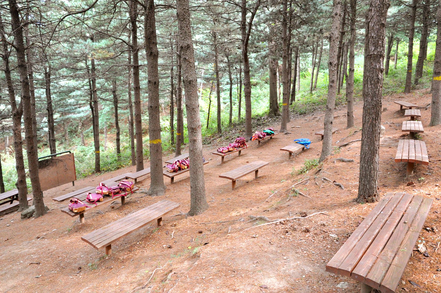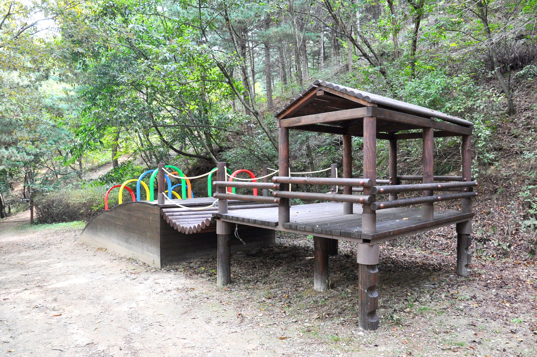잣나무와 소나무 아래 펼쳐진 산림욕장에서는 휴식을 취할 수 있는 정자와 곳곳에 벤치들도 만나볼 수 있습니다.