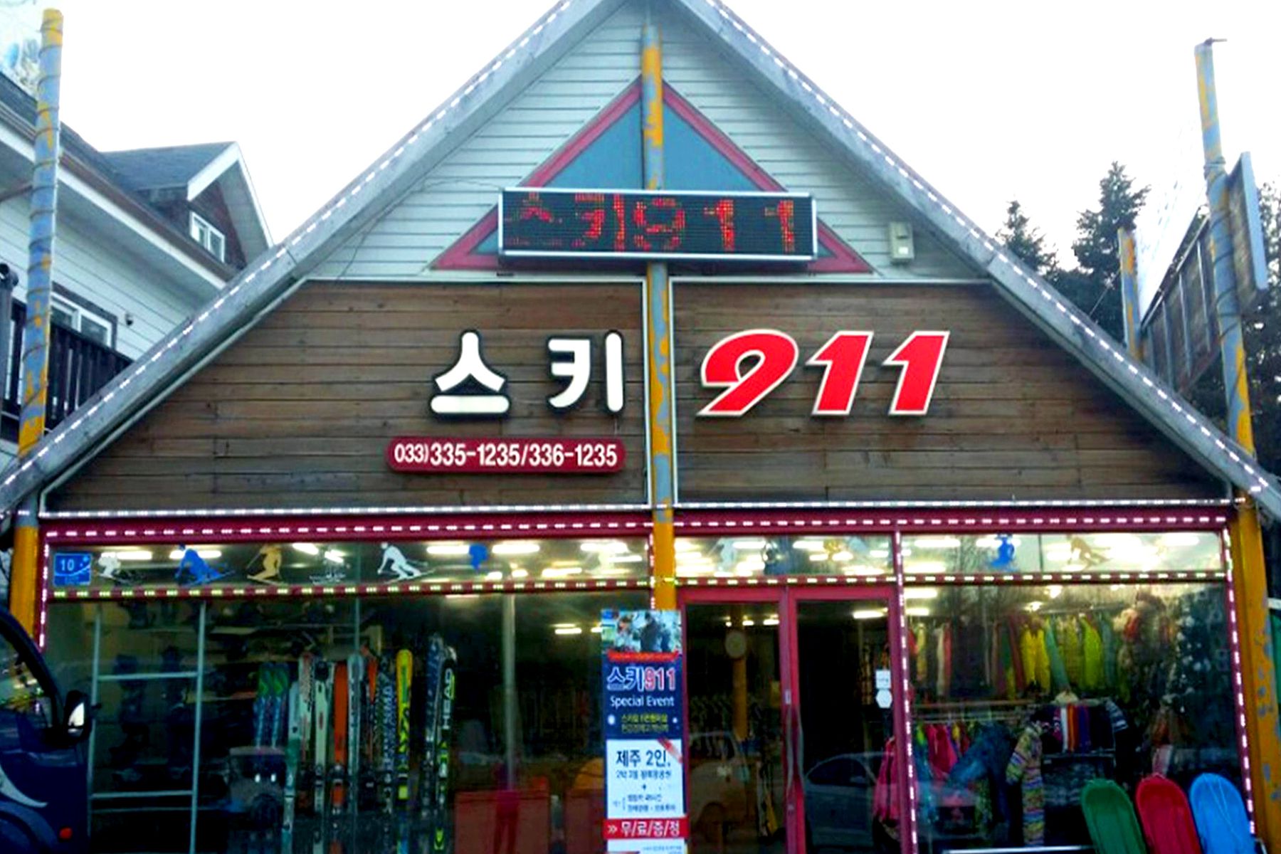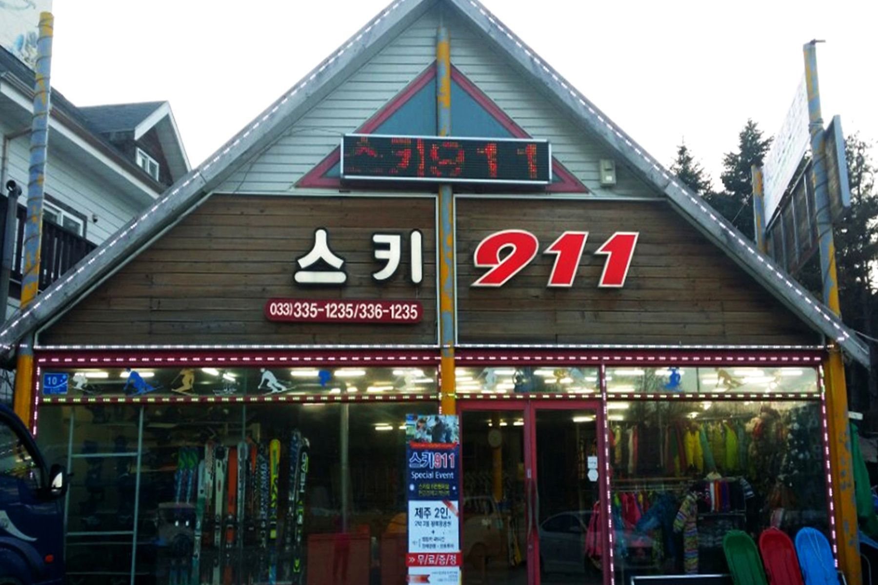 강원도 평창에 자리한 겨울스포츠인 스키와 보드전문 렌탈샵인 '용평스키911렌탈샵' 입니다.