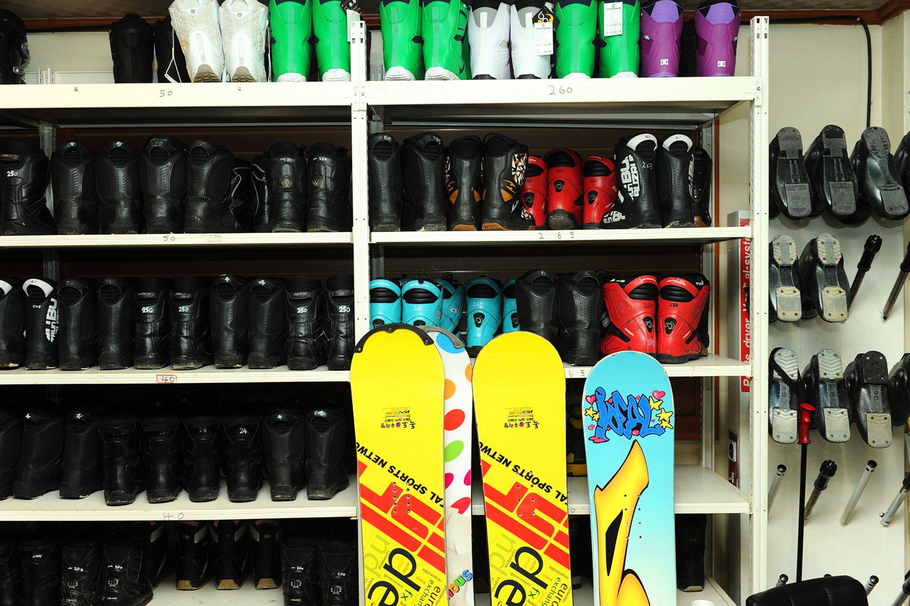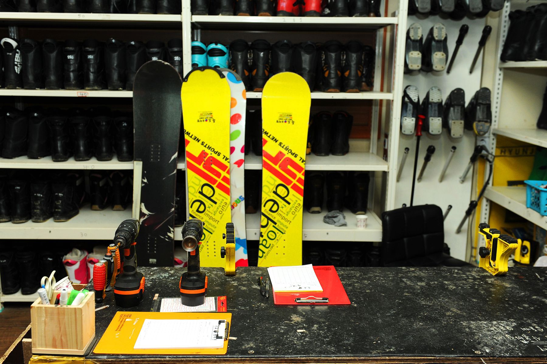 스키와 보드 등의 장비를 늘 철저하게 관리하고 있는 스키샵입니다.