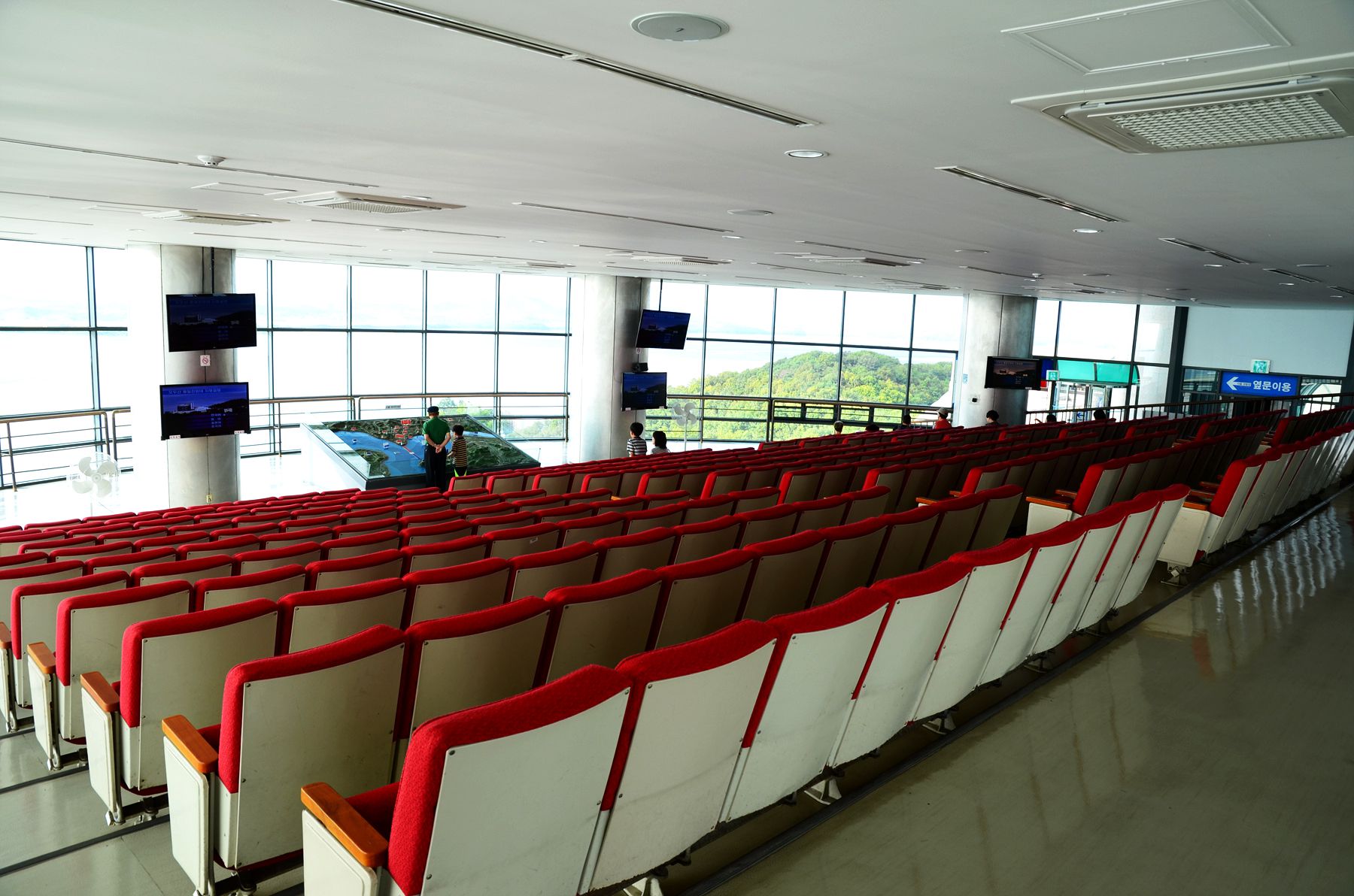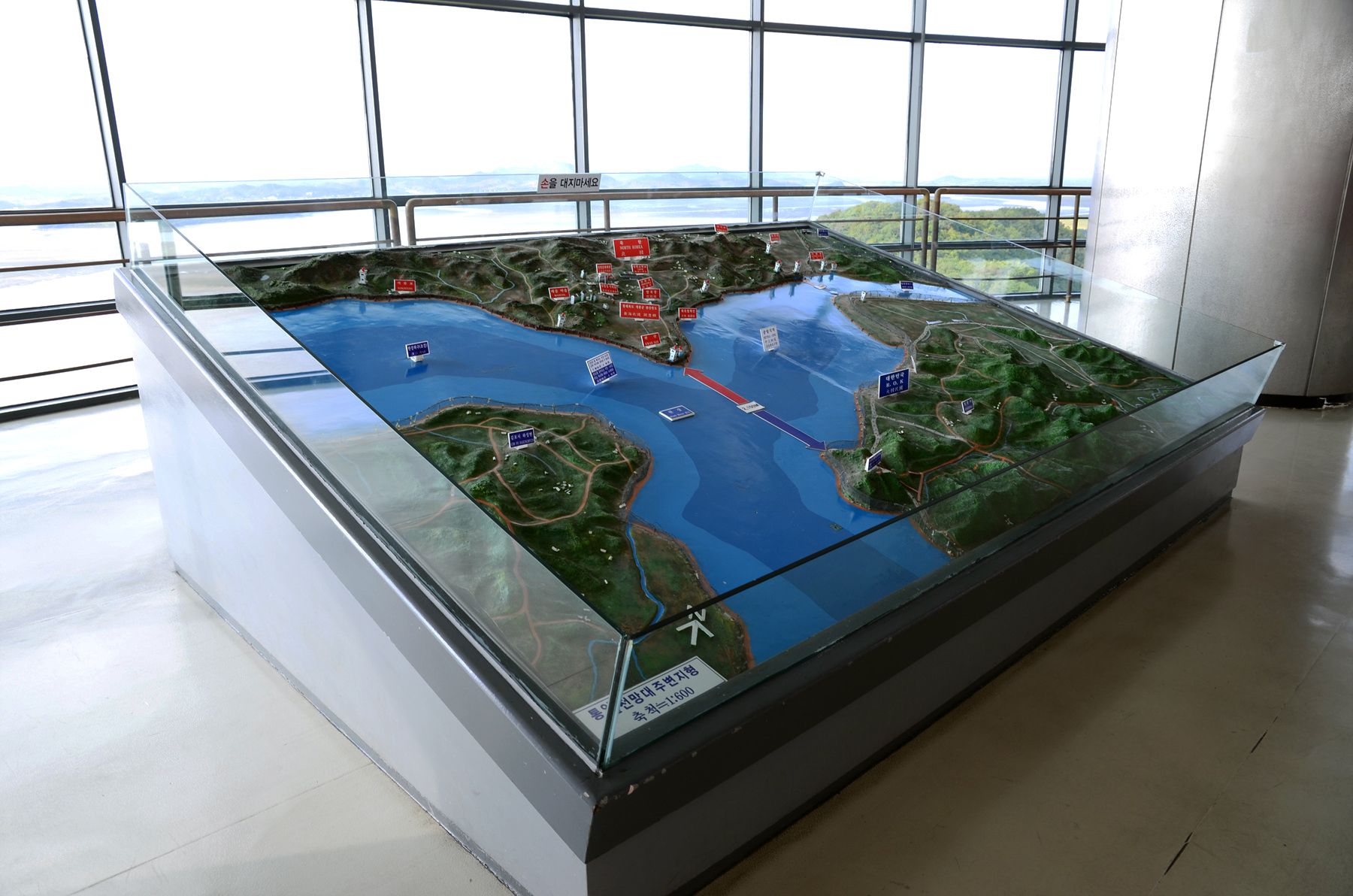 전면이 유리로된 원통형 실내공간으로 북한 지형과 주민들의 대해서도 북한지역을