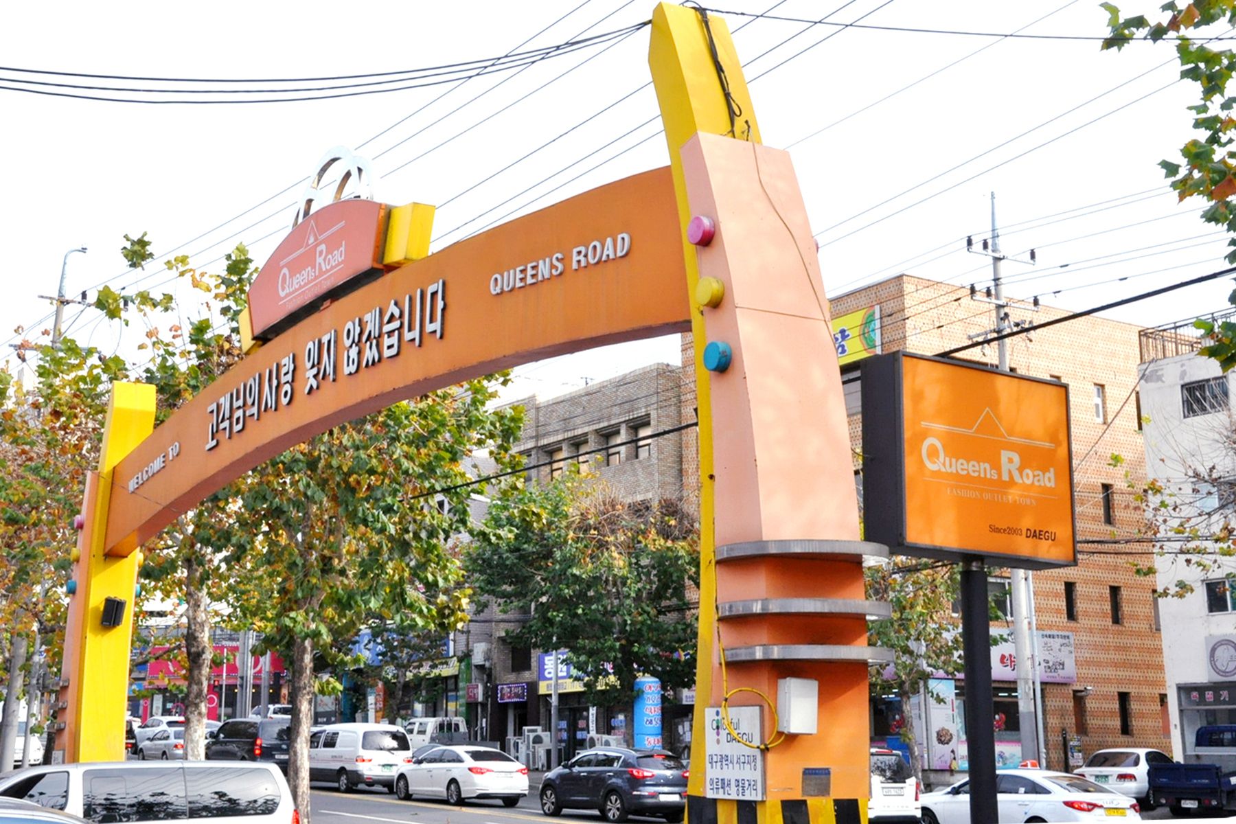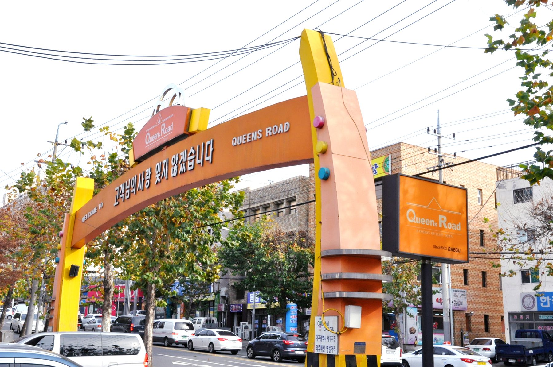 퀸스로드는 2003년 1만 4천㎡ 부지에 의류매장 70개, 음식점 및 각종 사무실 20여개로 오픈하였습니다.