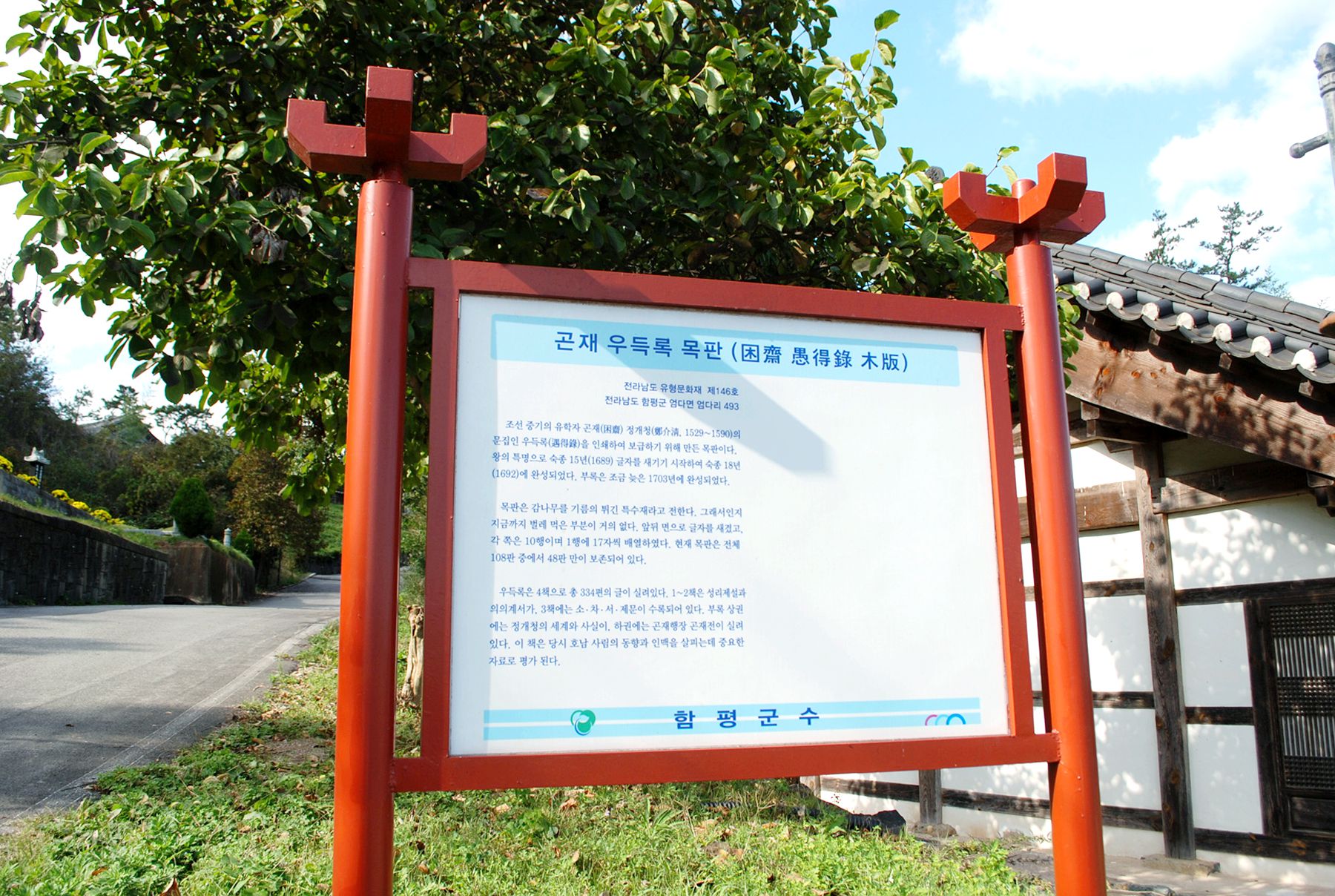 곤재 우득록 목판은 시도유형문화재이자 전남유형문화재 제146호로 지정되어 이기설을 비롯한 문학, 철학, 천문, 역학 등 334편이 수록되어 있으며
