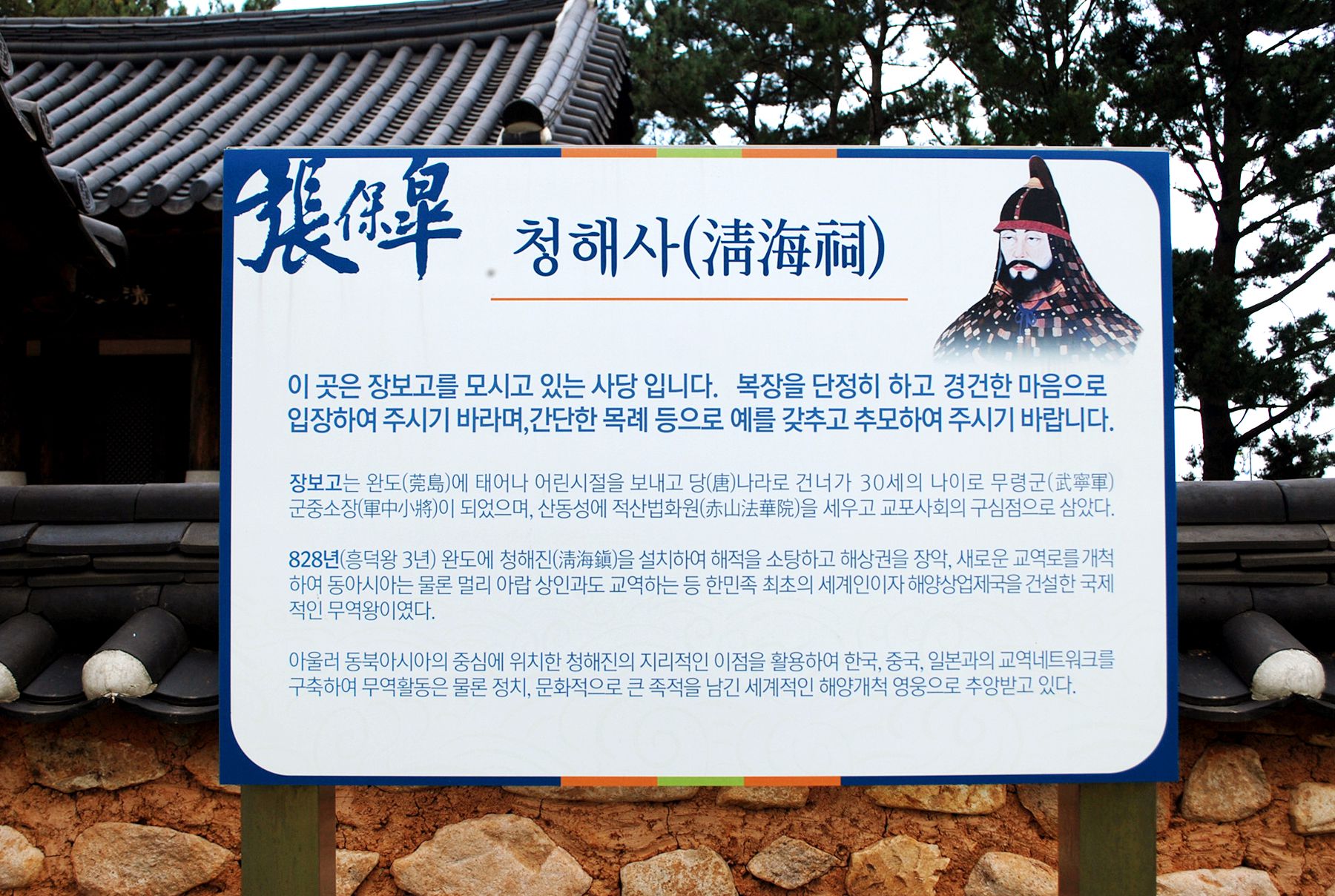 장보고공원 내에서는 장보고의 업적을 기리는 참배 장소인 '청해사'를 만나볼 수 있는데요,