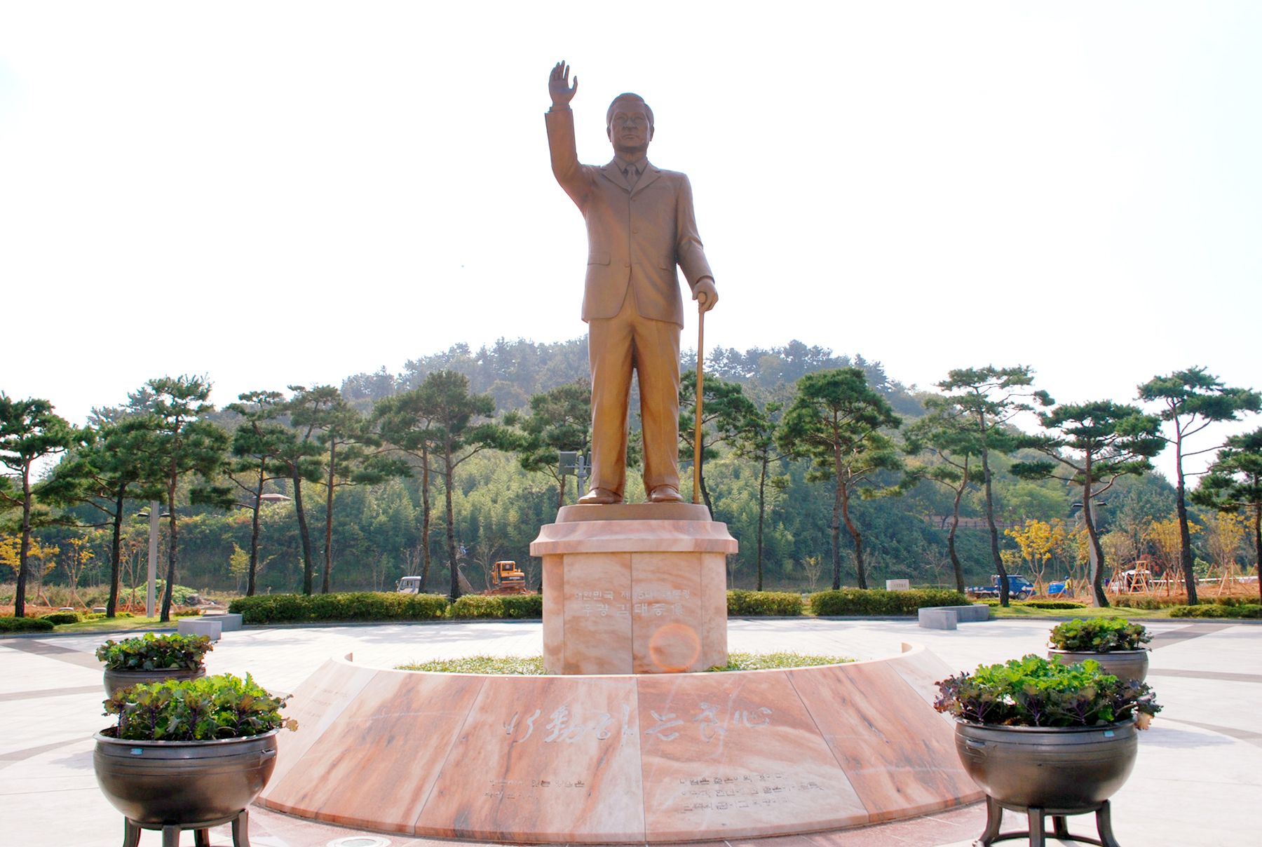 처음 설계와는 다르게 김대중 전 대통령께서 헤쳐온 역경을 상징한다는 의미로 왼손에 지팡이를 든 모습으로 바뀌었다고 합니다.