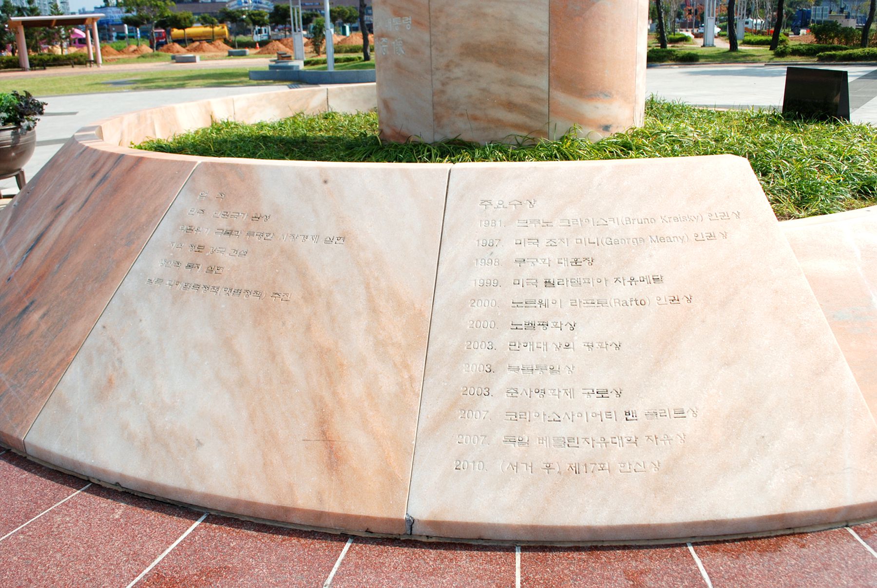 김대중 전 대통령의 동상은 동신대 김왕현 교수님께서 직접 제작한 동상으로써 '인류의 평화-김대중' 이라는 제목이 붙여져 있으며