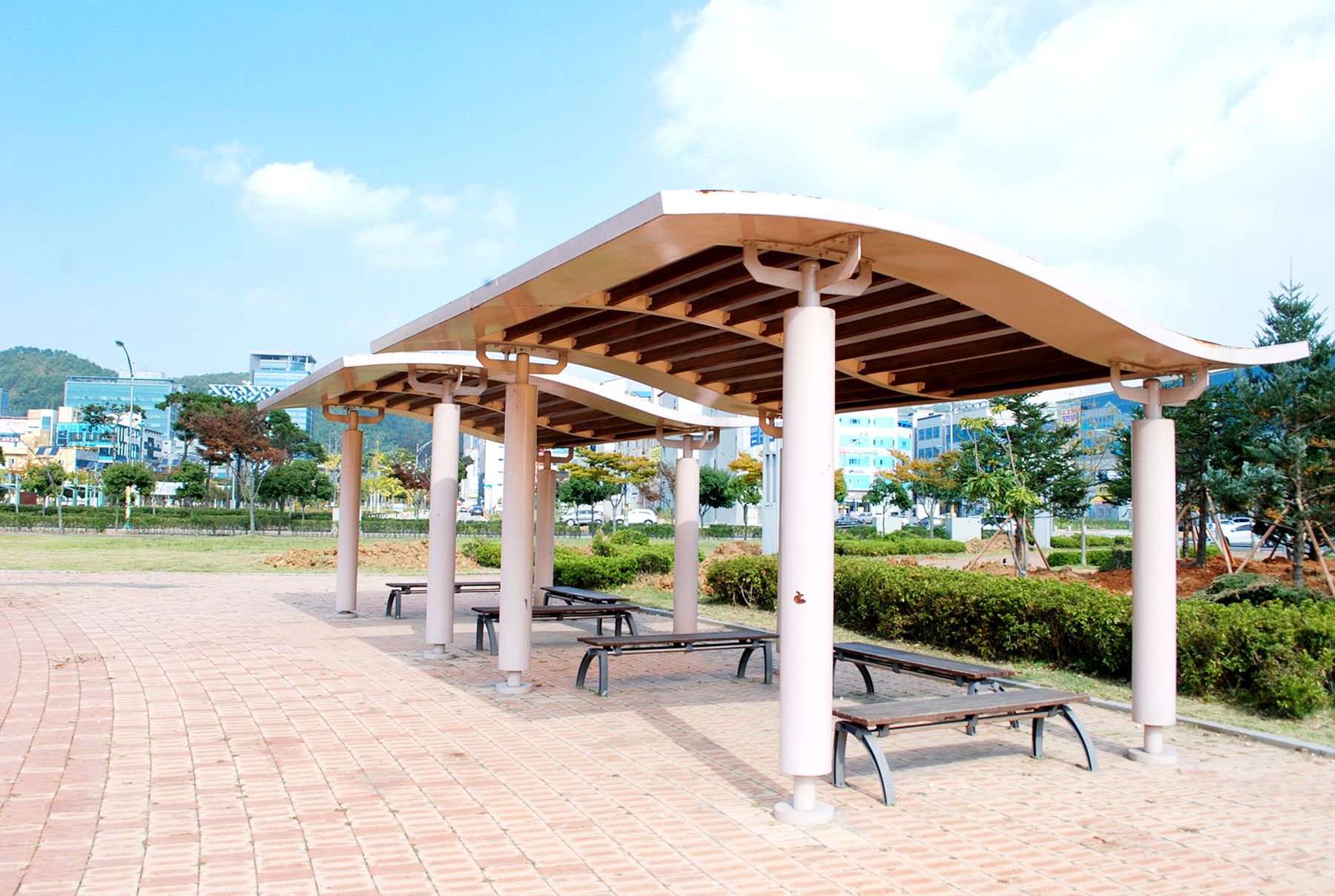 광장 내에는 햇빛을 피해 쉬어갈 수 있는 정자 또한 설치되어 있어 운치있는 쉼터를 제공해주고 있으며