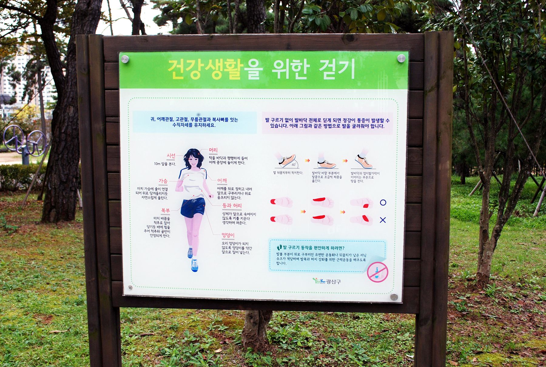 곳곳에 안내판이 마련되어 있으니 규칙사항을 잘 준수하여 즐거운 시간을 더해보시고, 산책시 체계적으로 건강을 챙겨보시길 바랍니다^^