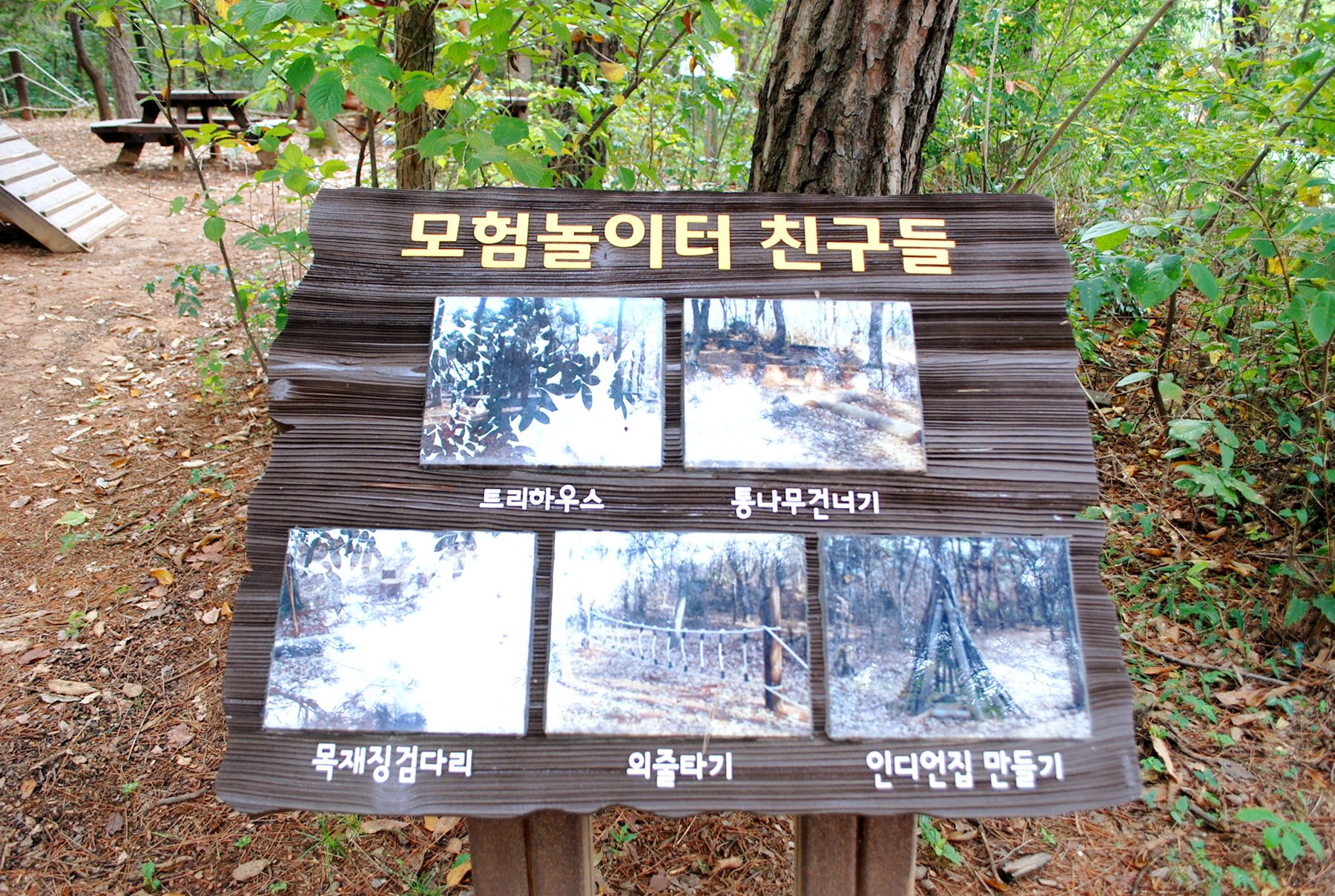 트리하우스, 목재징검다리, 외줄타기, 인디언집 만들기 등 모험놀이터에서 아이들과 함께 활동적인 시간을 보낼 수 있습니다.