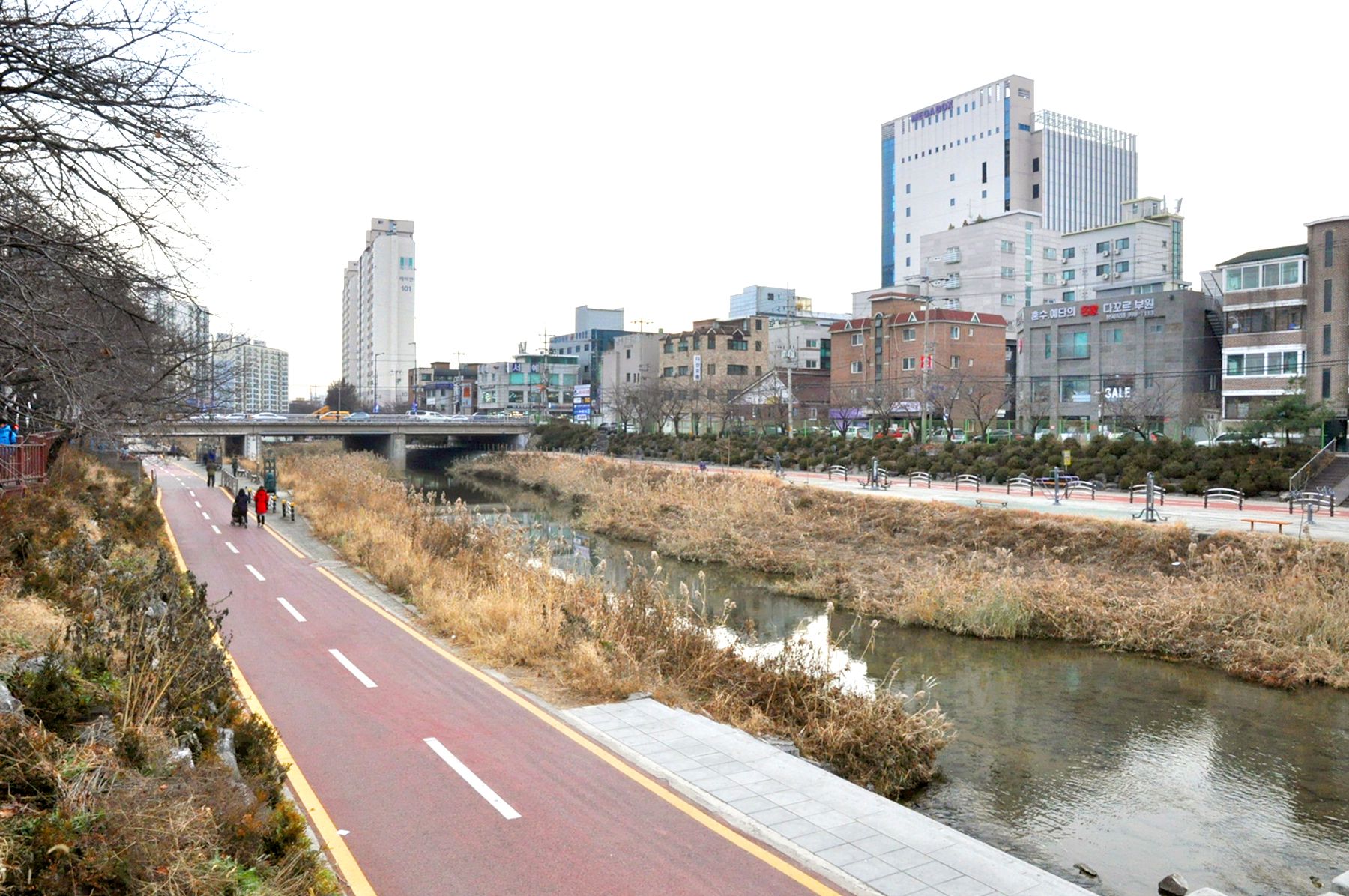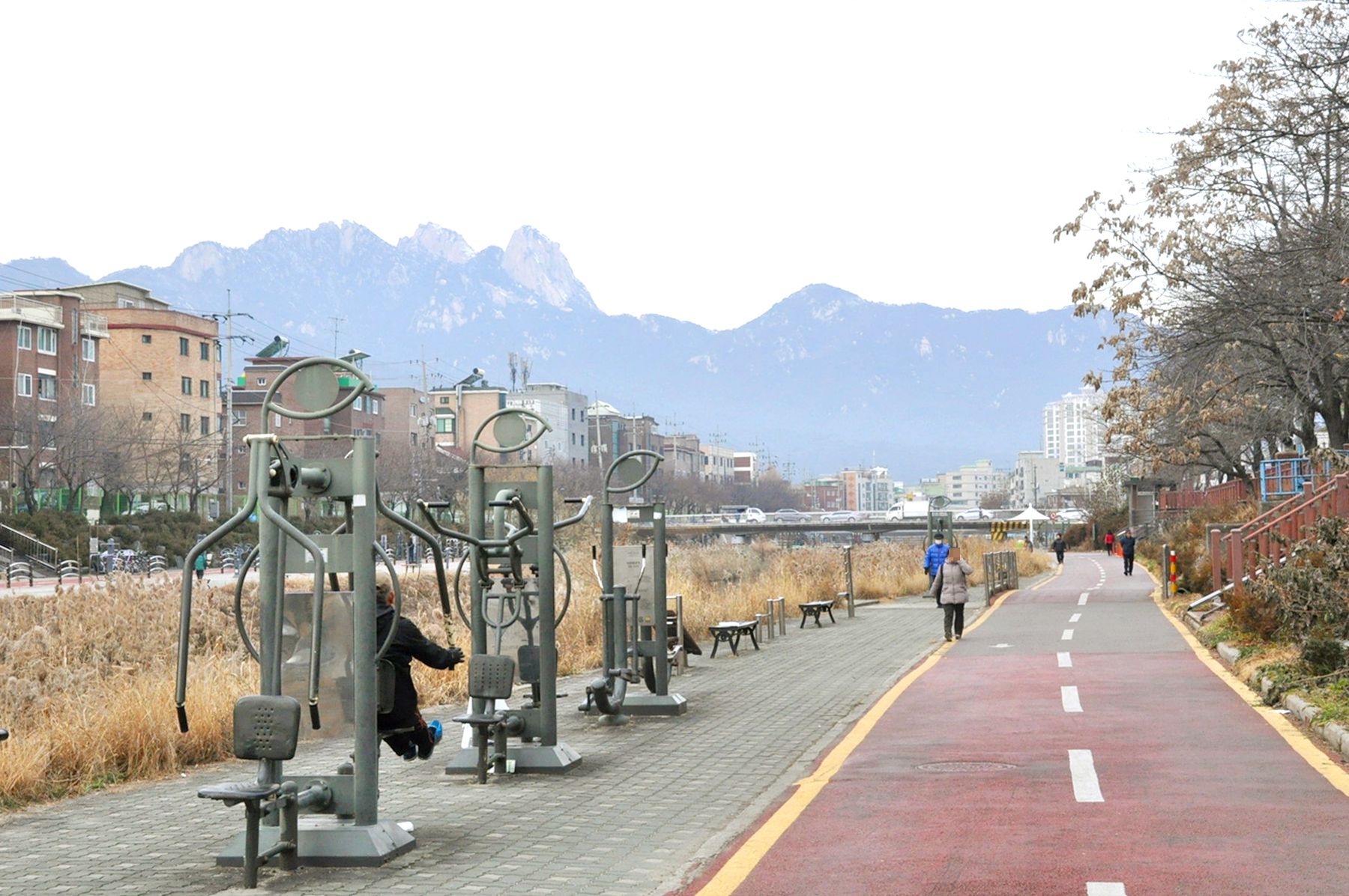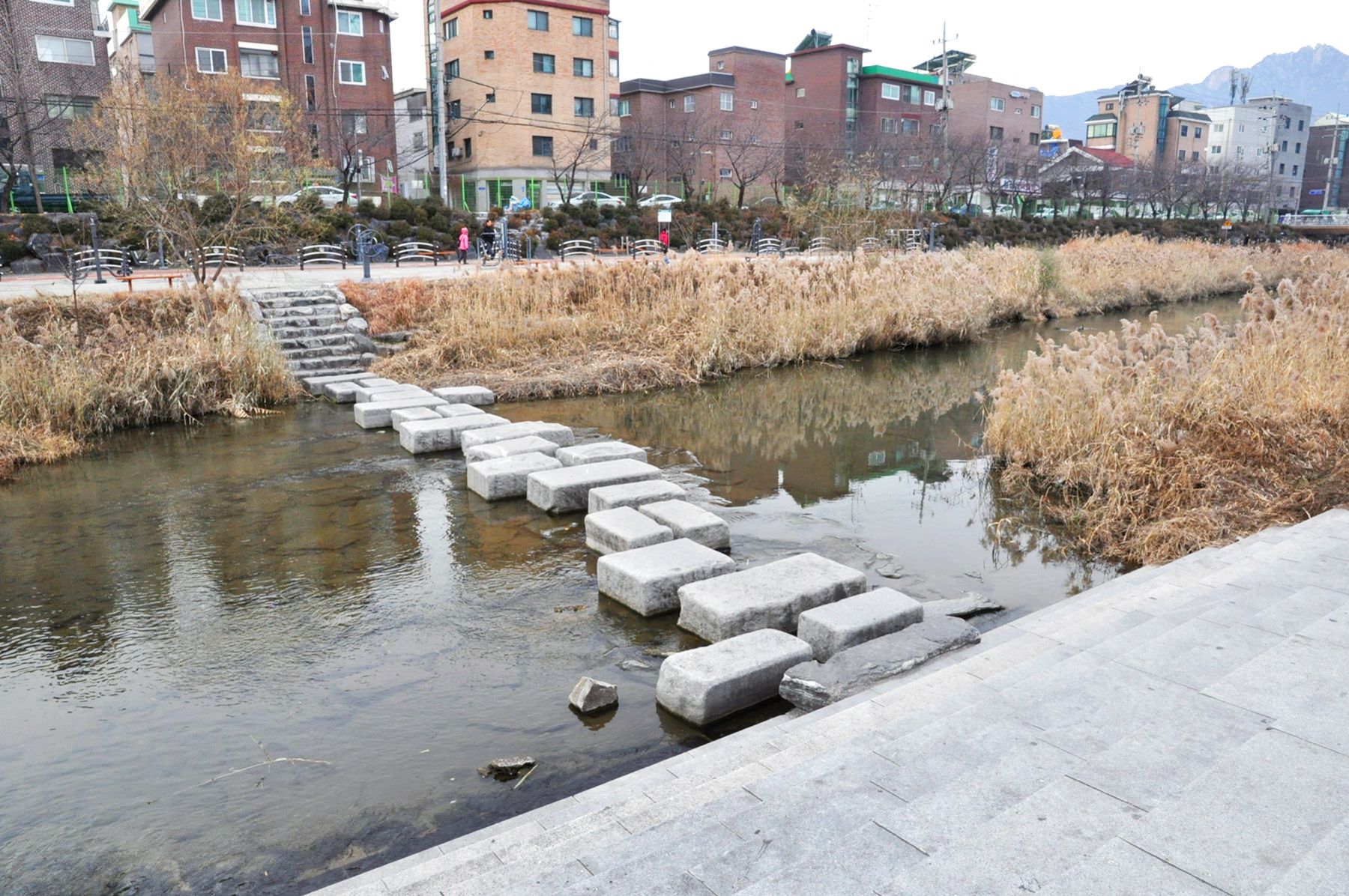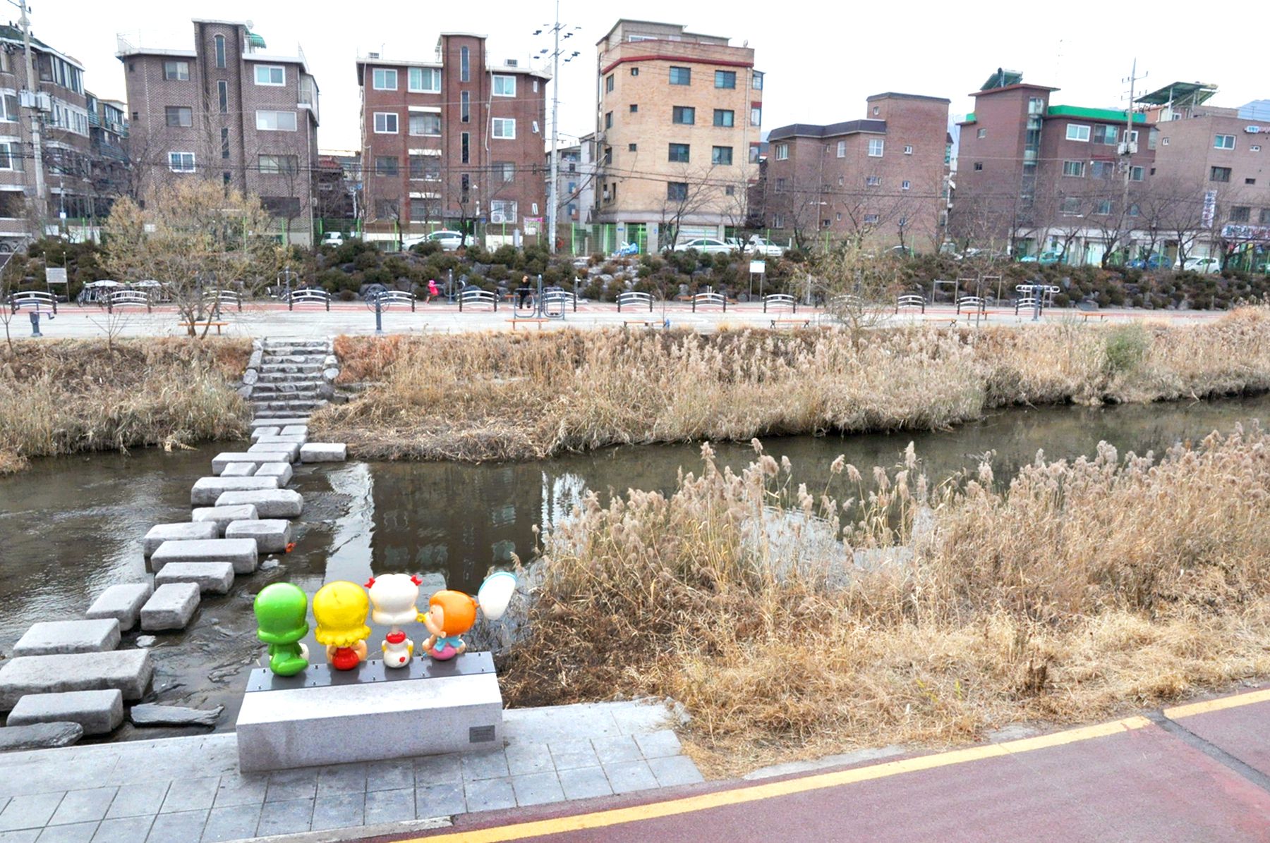 둘리와 친구들의 조형물이 명소처럼 자리잡고 있는 이곳 우이천에서