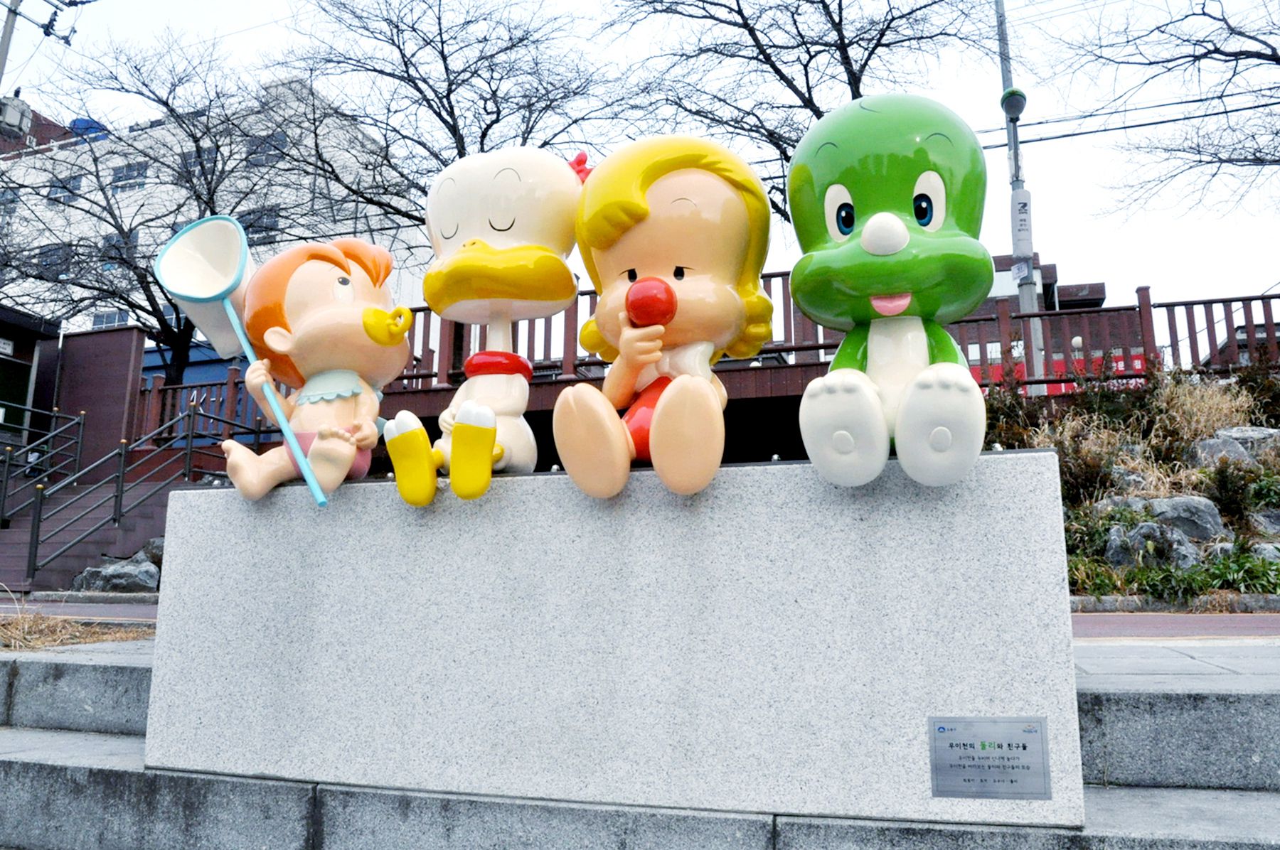 귀여운 모습의 둘리와 친구들 모형이 반갑게 맞이해 주고 있답니다.
