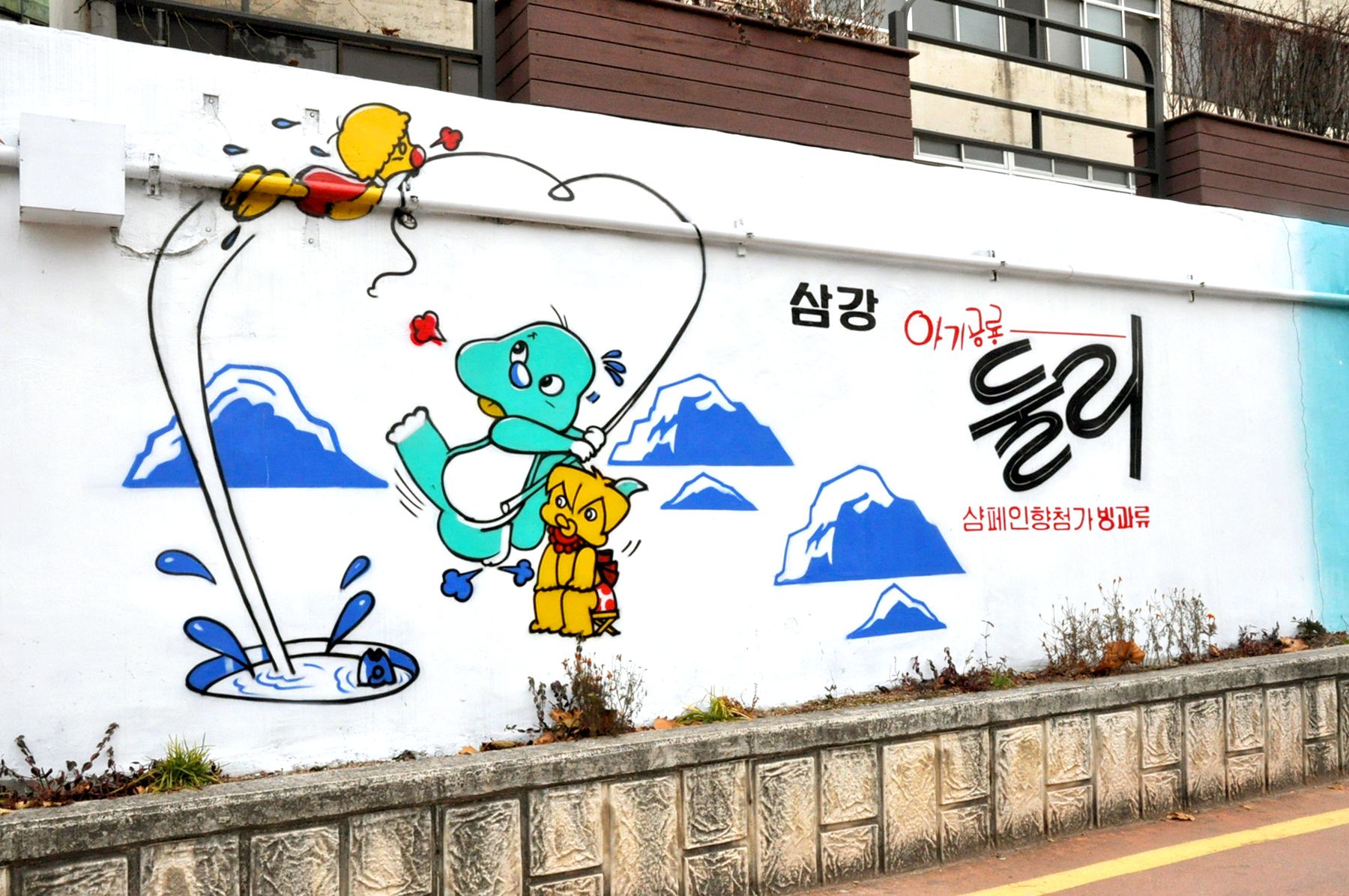 둘리 '얼음별 대모험' 에피소드를 벽화로 옮겨 '둘리벽화거리'를 조성하였는데요,