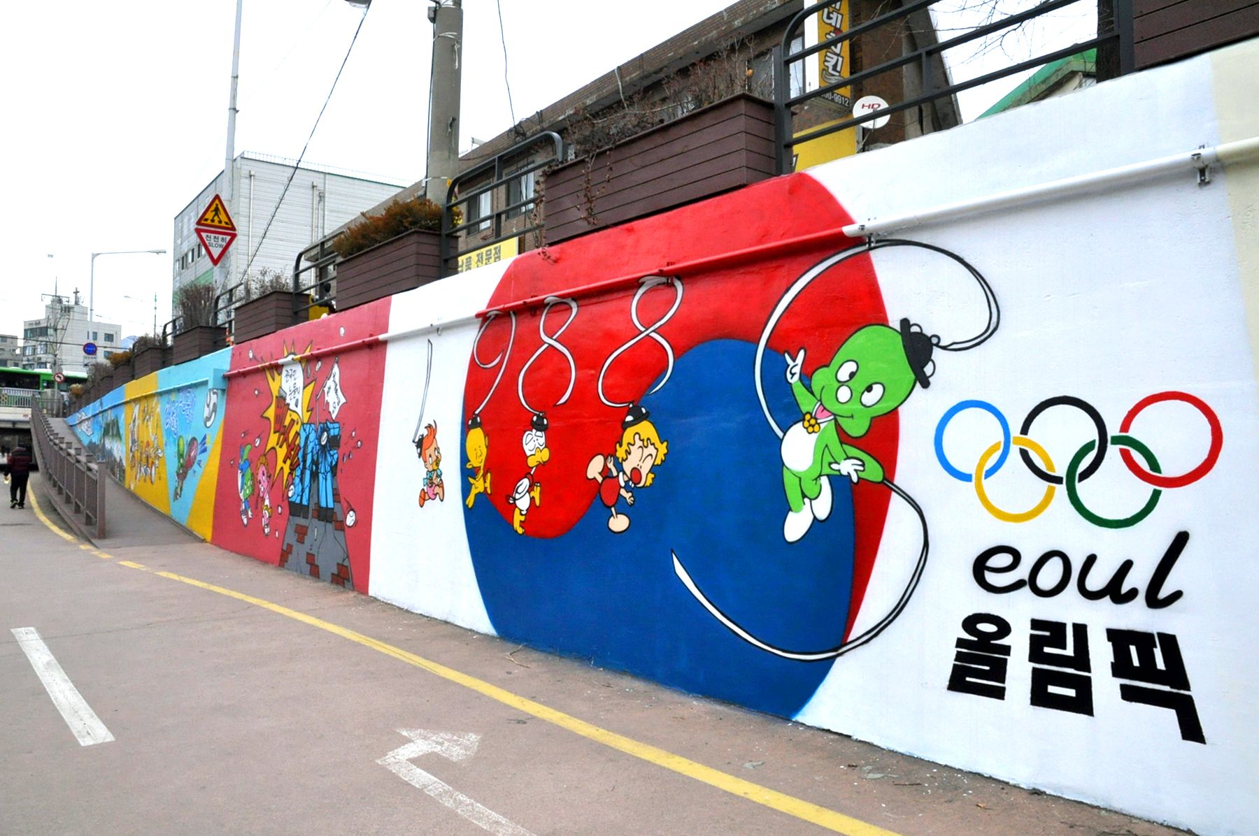 단일 캐릭터 벽화로는 서울시 최장 길이를 자랑하고 있습니다.