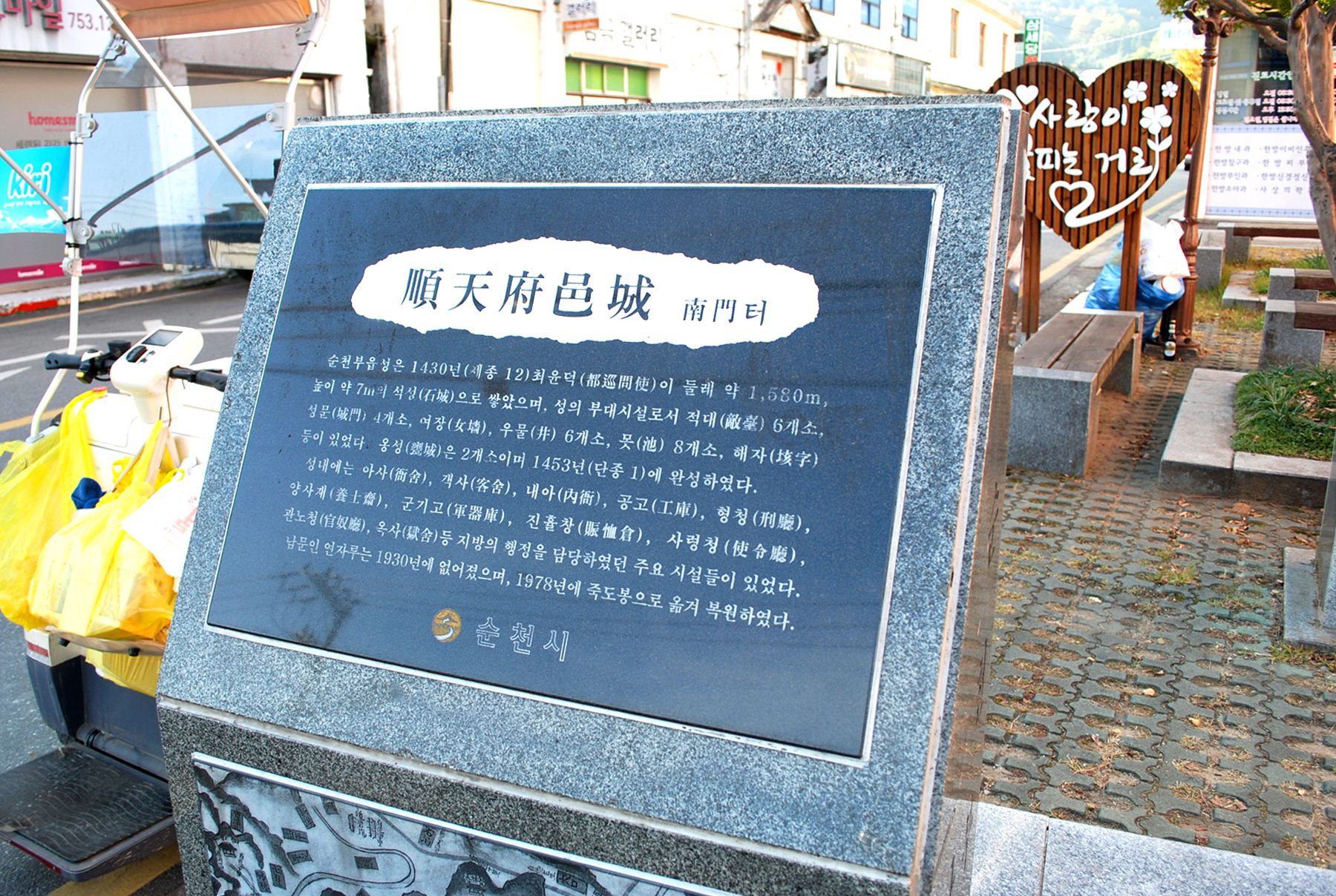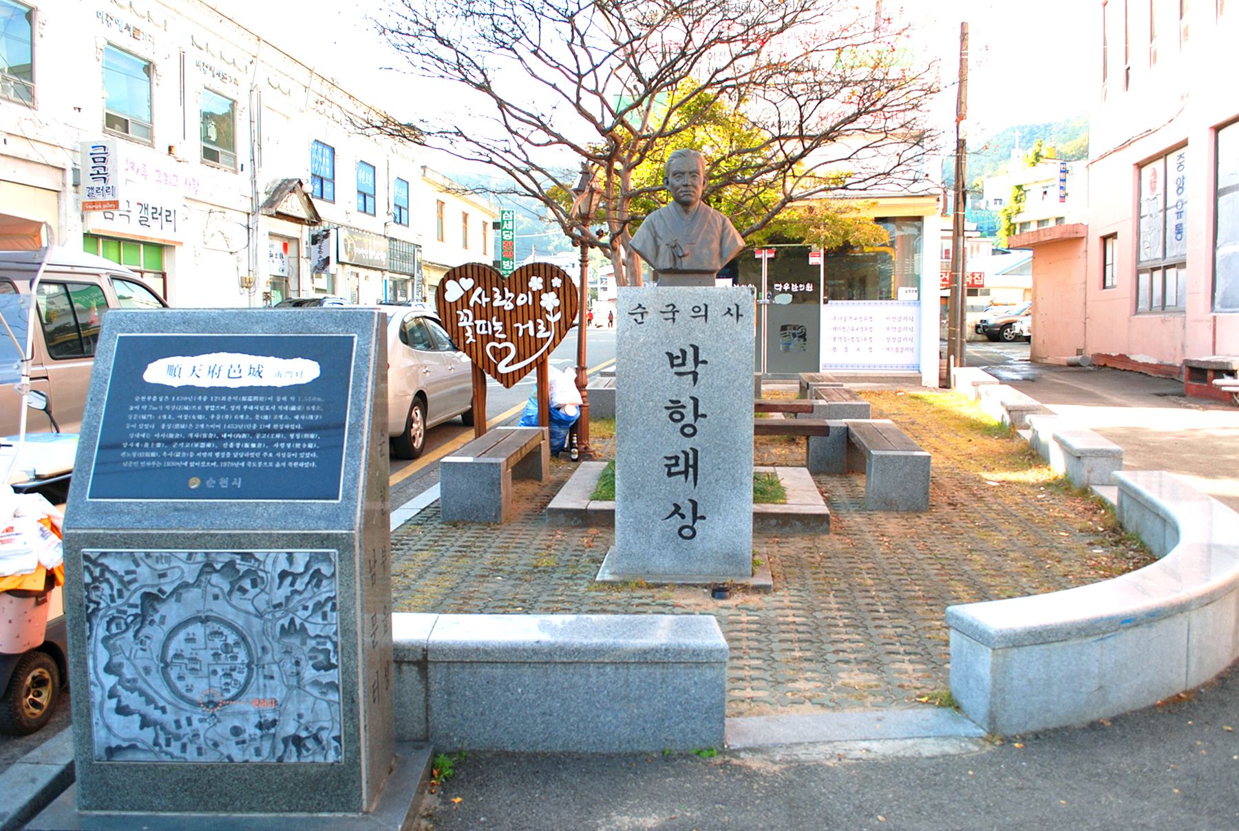 특히 순천중앙시장 초입의 맞은편에는 순국의사 박항래상과 순천부읍성에 대한 안내석이 자리잡고 있는데요,
