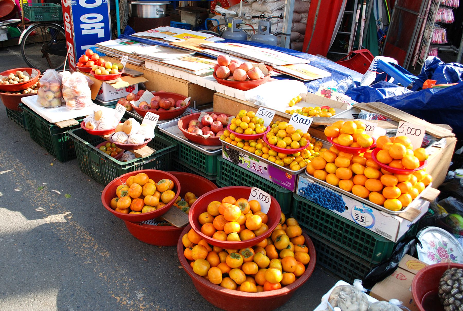 제철과일부터 싱싱한 농수산물들과 함께 정겨운 시장의 모습이 인상적인데요,