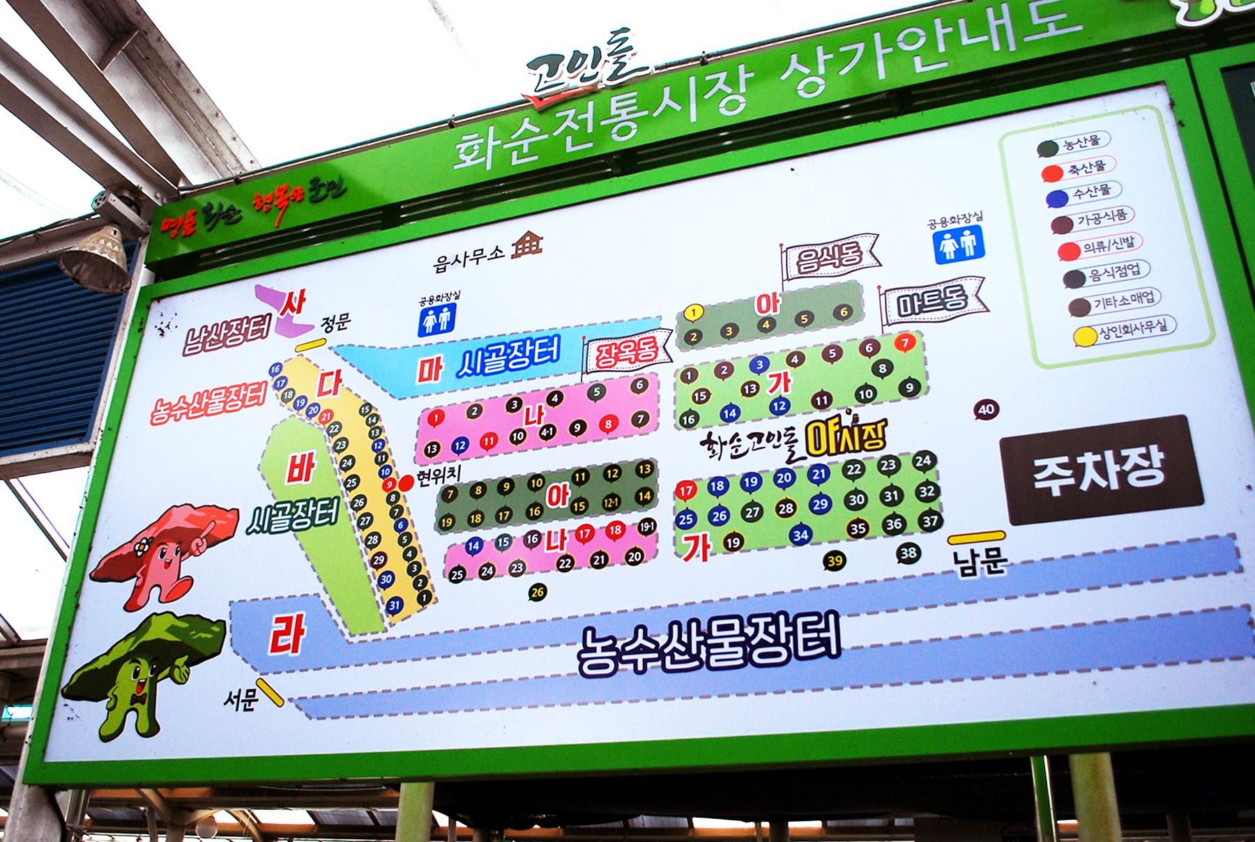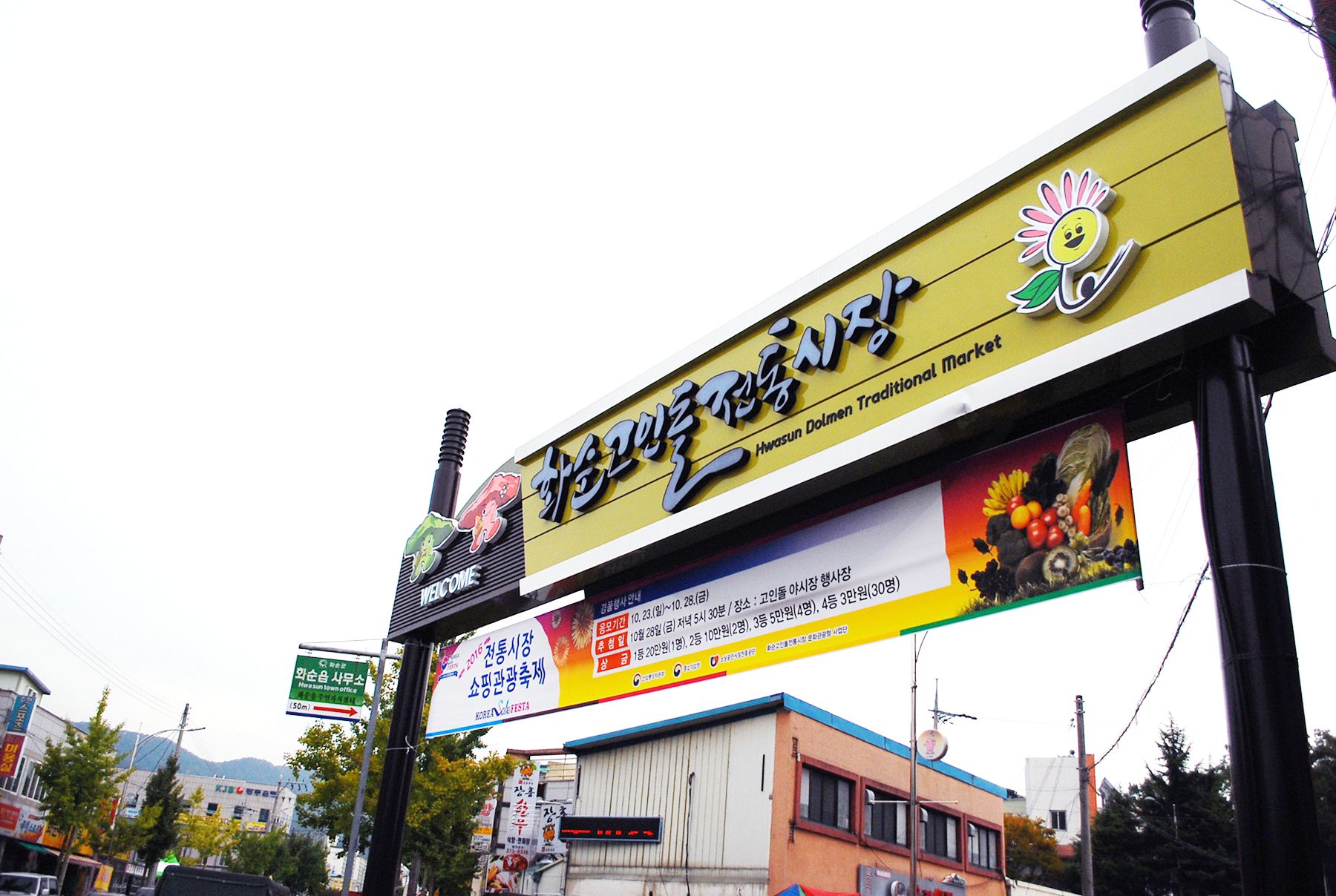 2016년 현재 모두 6개의 정기시장이 각각의 장날에 열리고 있으며 그중 화순고인돌시장은 화순의 중심시장으로 자리잡아 많은 사람들이 방문하고 있습니다.