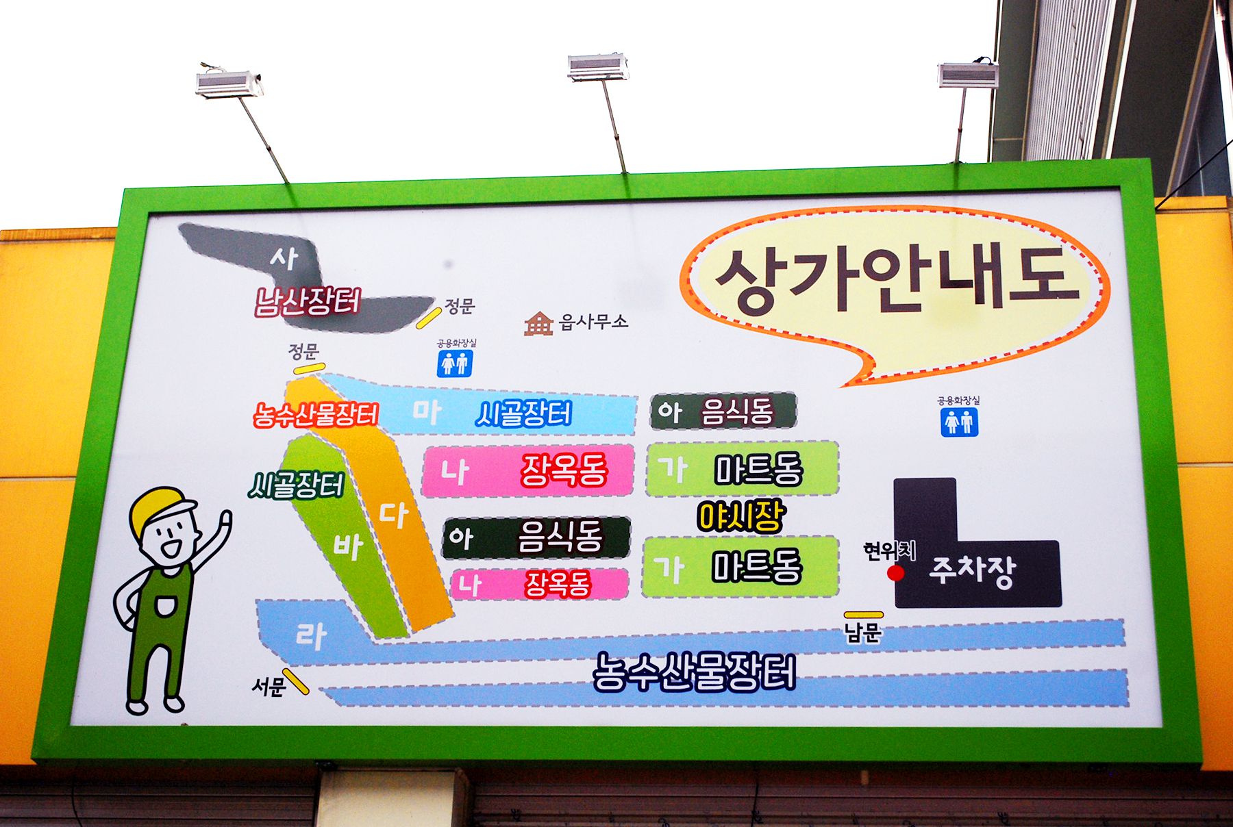 또한, 시장 곳곳에 설치되어 있는 시장안내표지는 좀 더 편리하게 장을 볼 수 있도록 도움을 주고 있답니다.