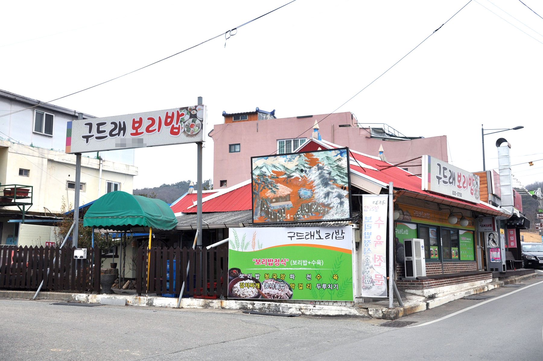 한우집, 연잎밥, 칼국수, 갈비, 장어구이, 감자탕, 보쌈, 해산물전문점, 쌈밥, 카페 등 다양한 음식점들이 즐비해 있는 굿뜨래 음식 특화거리의 식당들은