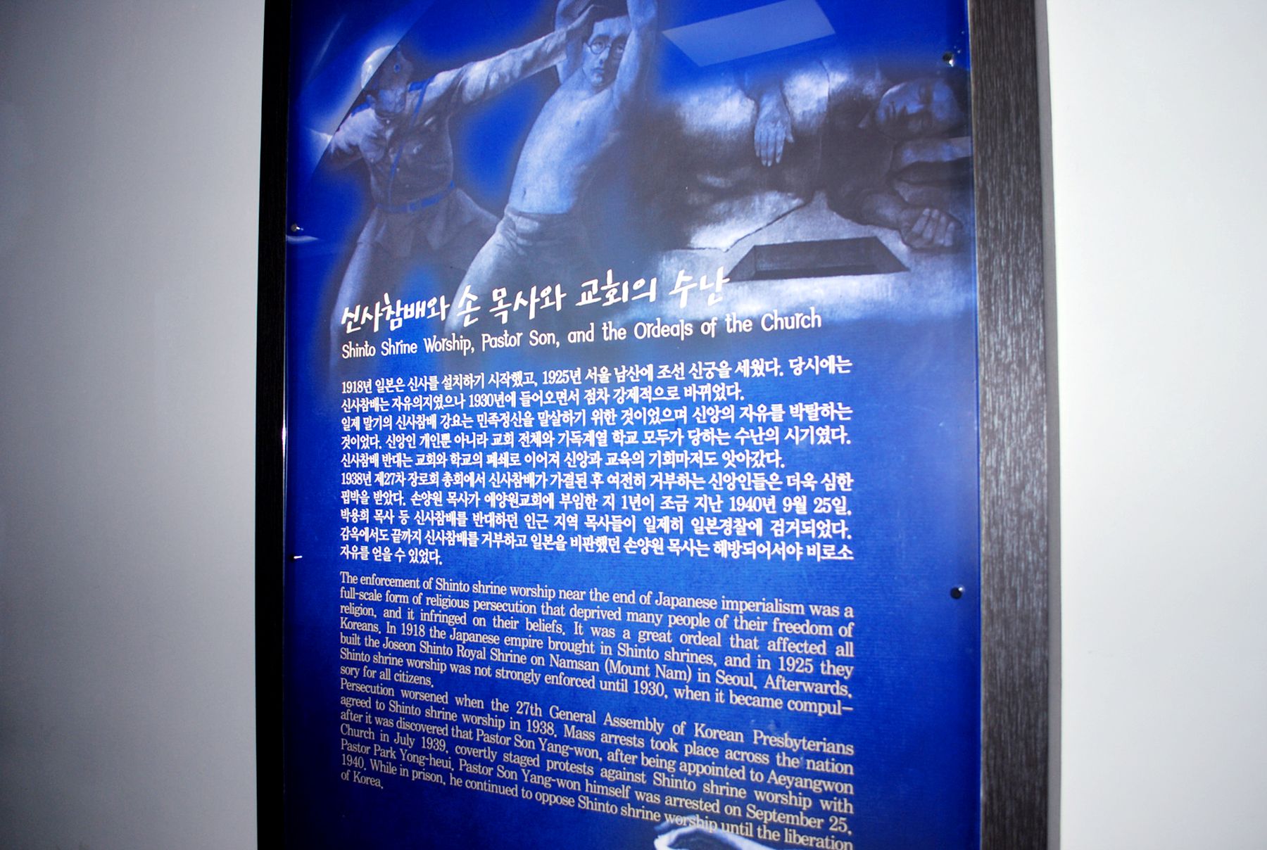 손양원 목사님께서는 애양원에서 일하던 1940년도에 신사참배를 반대한다는 이유로 체포된 사례가 있는, 대표적으로 신사참배를 반대하셨던 분 중 한분이십니다.