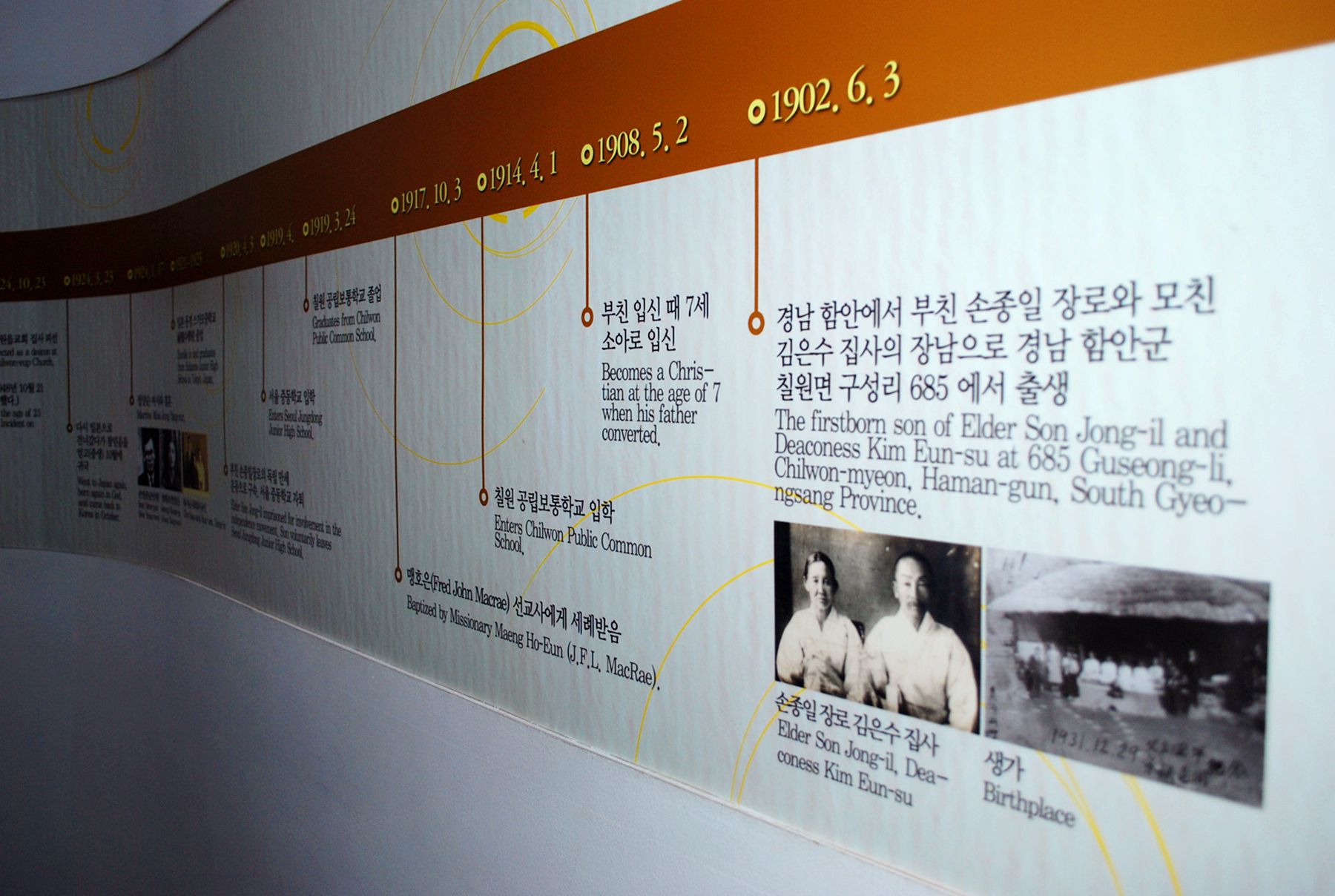 손양원 목사님께서는 1902년 6월 3일 경남 함안군 칠원면 구성리에서 태어났으며 당시 칠원교회의 손종일 장로님의 장남으로 출생하였는데요,