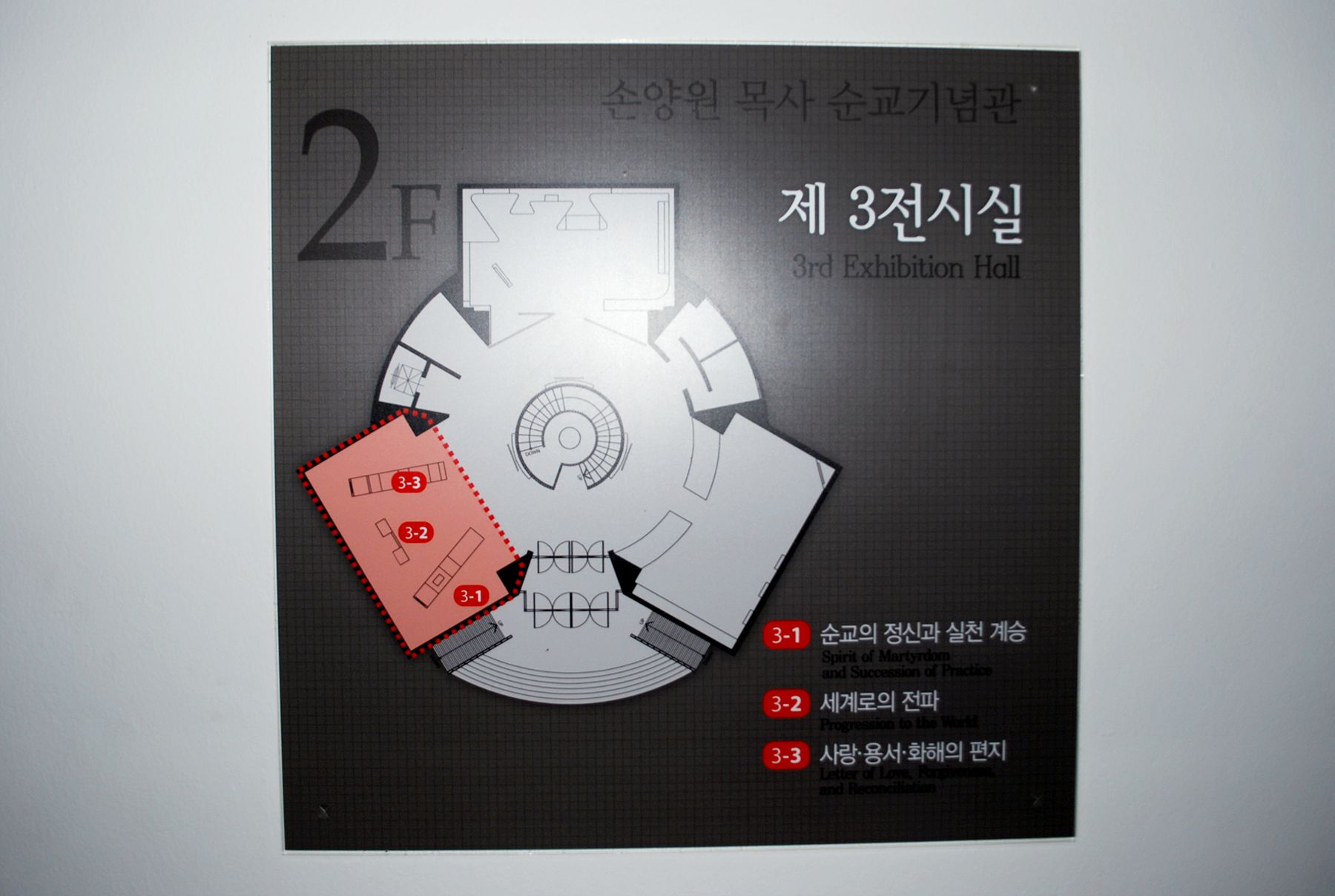 3 전시실에서는 손양원 목사님의 순교활동을 포함하여 용서와 사랑이 어떤 것들인지에 대한 내용들이 사진과 함께 자세히 설명되고 있습니다.