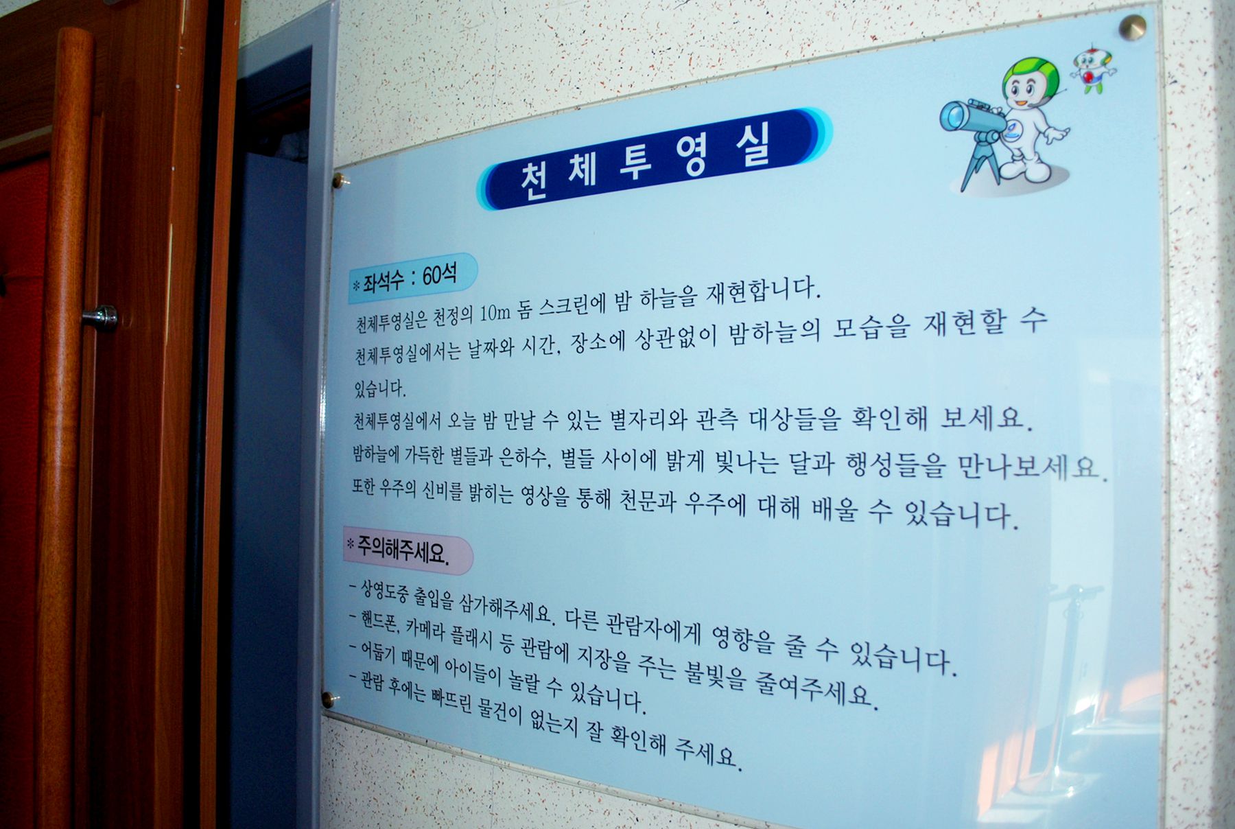 천정이 반구형 돔스크린으로 되어 있어 낮과 밤 날씨에 상관없이 밤하늘을 재현할 수 있으며