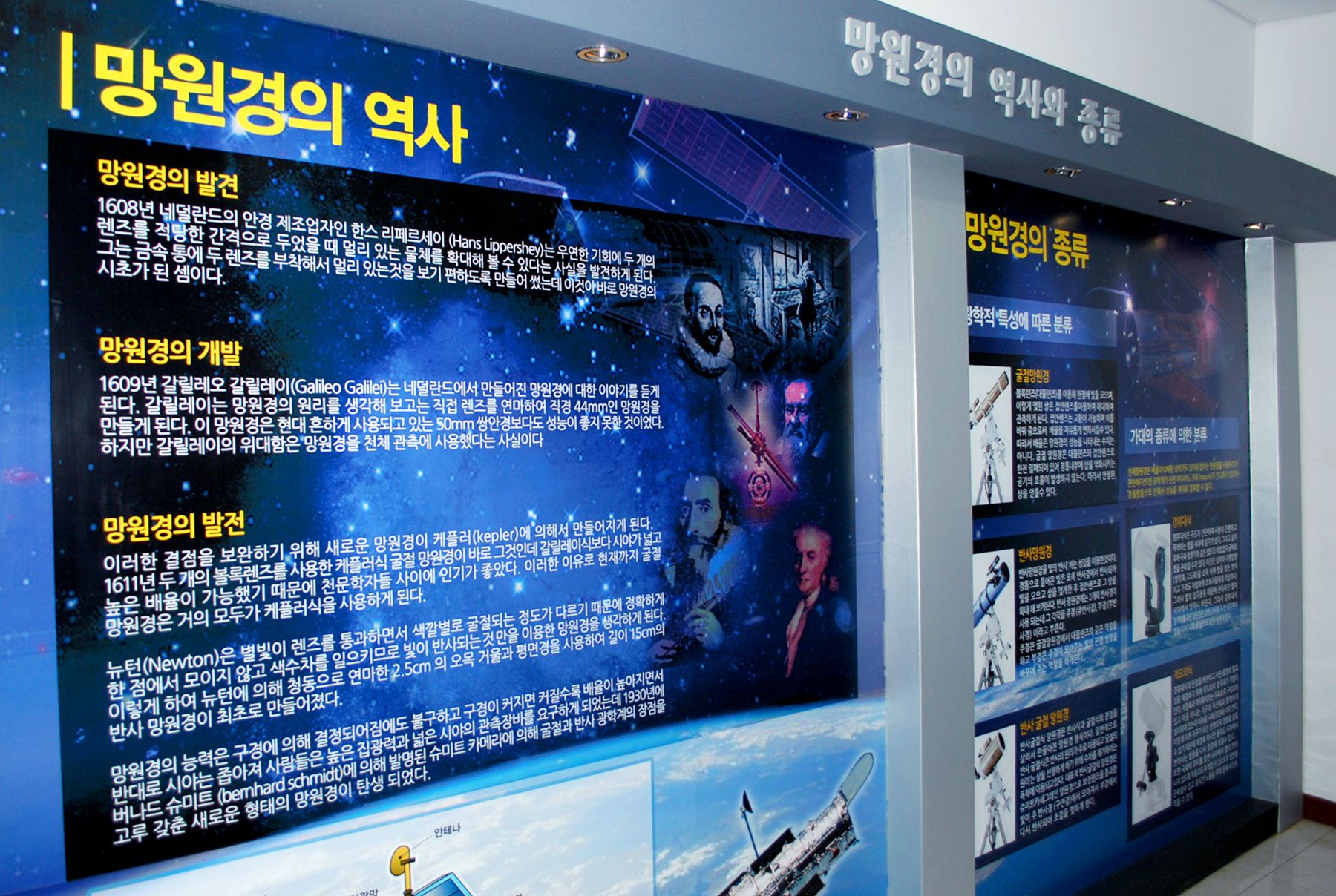 천문과 우주개발에 대해 다양하게 전시되어 있는 '전시실'입니다.