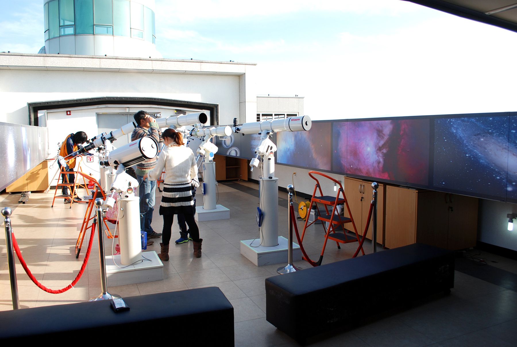총 7개의 망원경이 설치되어 있어 다양한 대상을 관측할 수 있으며 아이들도 쉽게 관측할 수 있어 이곳을 찾는 많은 분들에게 인기만점 장소로 각광받고 있습니다.