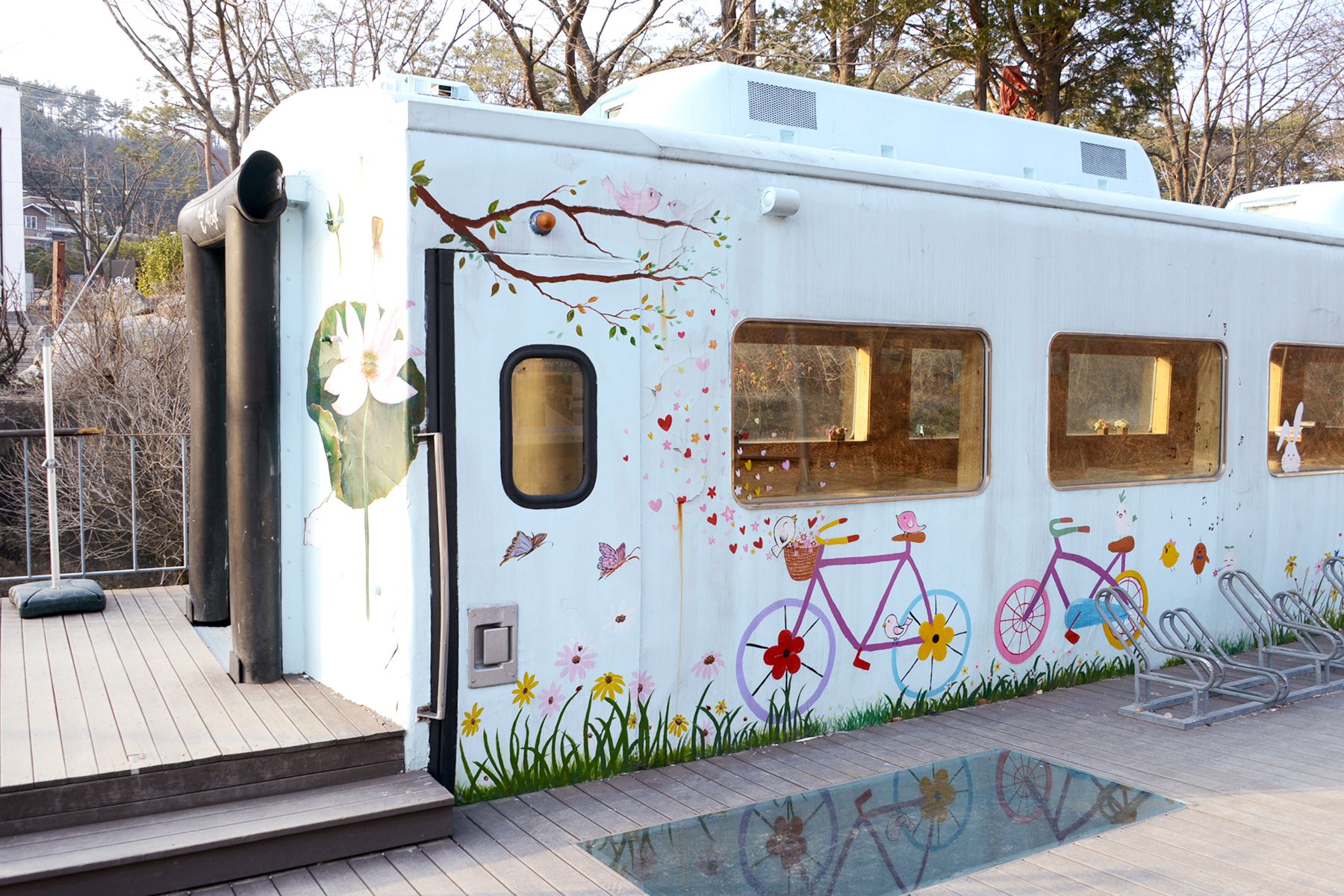열차 벽면은 알록달록 그림을 그려넣어 예쁘게 꾸며놓았고,