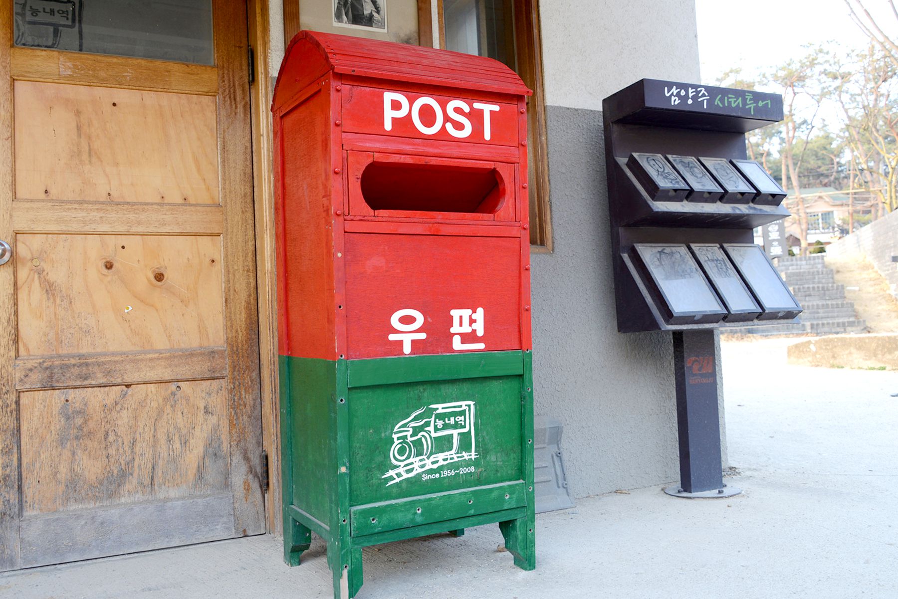 우편함, 아이스케키 박스, 구두닦이 박스 등 소품들이 놓여져 있어 컨셉사진을 찍기도 좋아