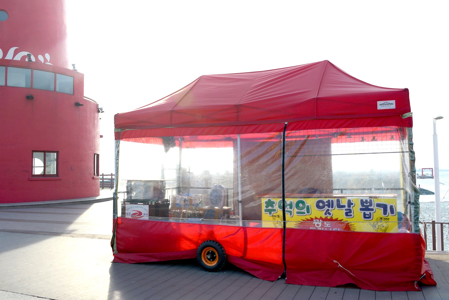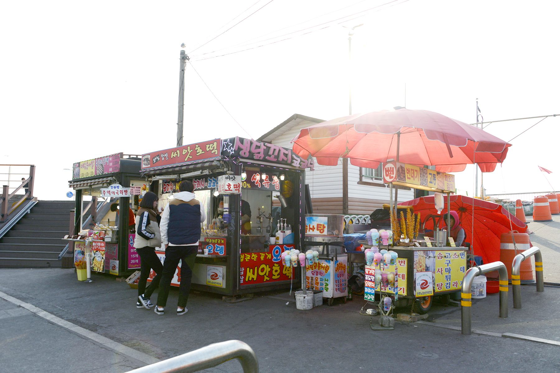 오이도 빨강등대 주변으로 솜사탕, 꼬치, 커피 등을 판매하는 포장마차와 뽑기, 게임 등 오락실이 모여있는 거리가 있습니다.