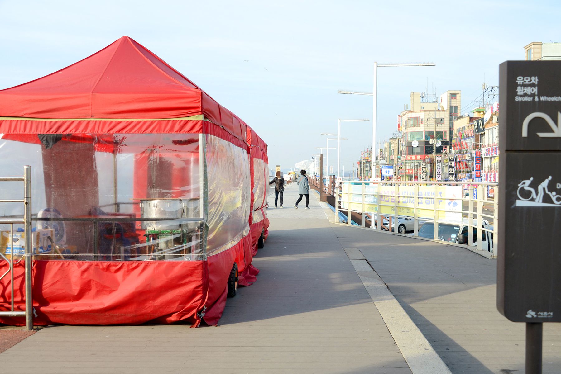 포장마차 거리에는 모든 포장마차와 파라솔 색깔이 빨간색을 하고 있는데요,