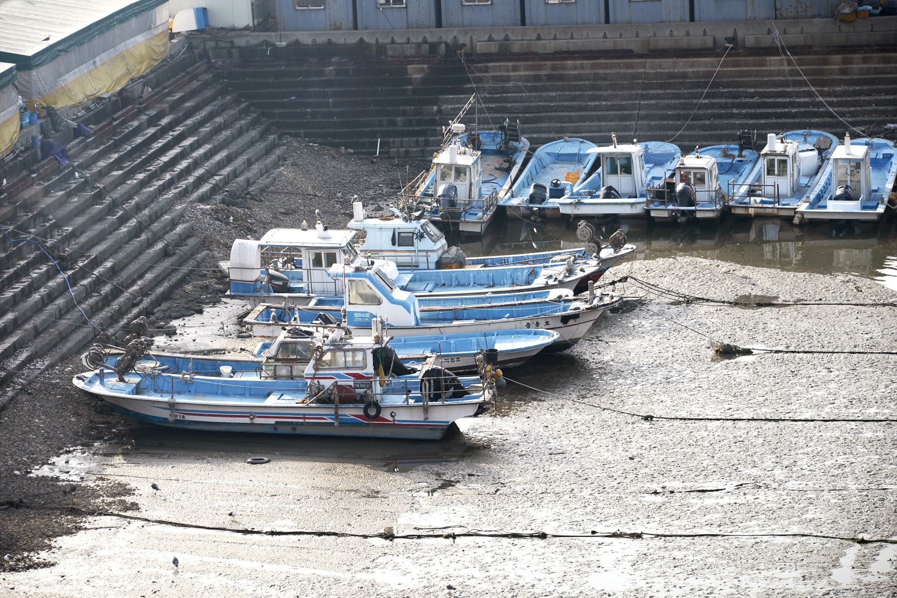 그리고 갯벌에 나란히 정박해있는 배들의 모습이 한눈에 들어옵니다.