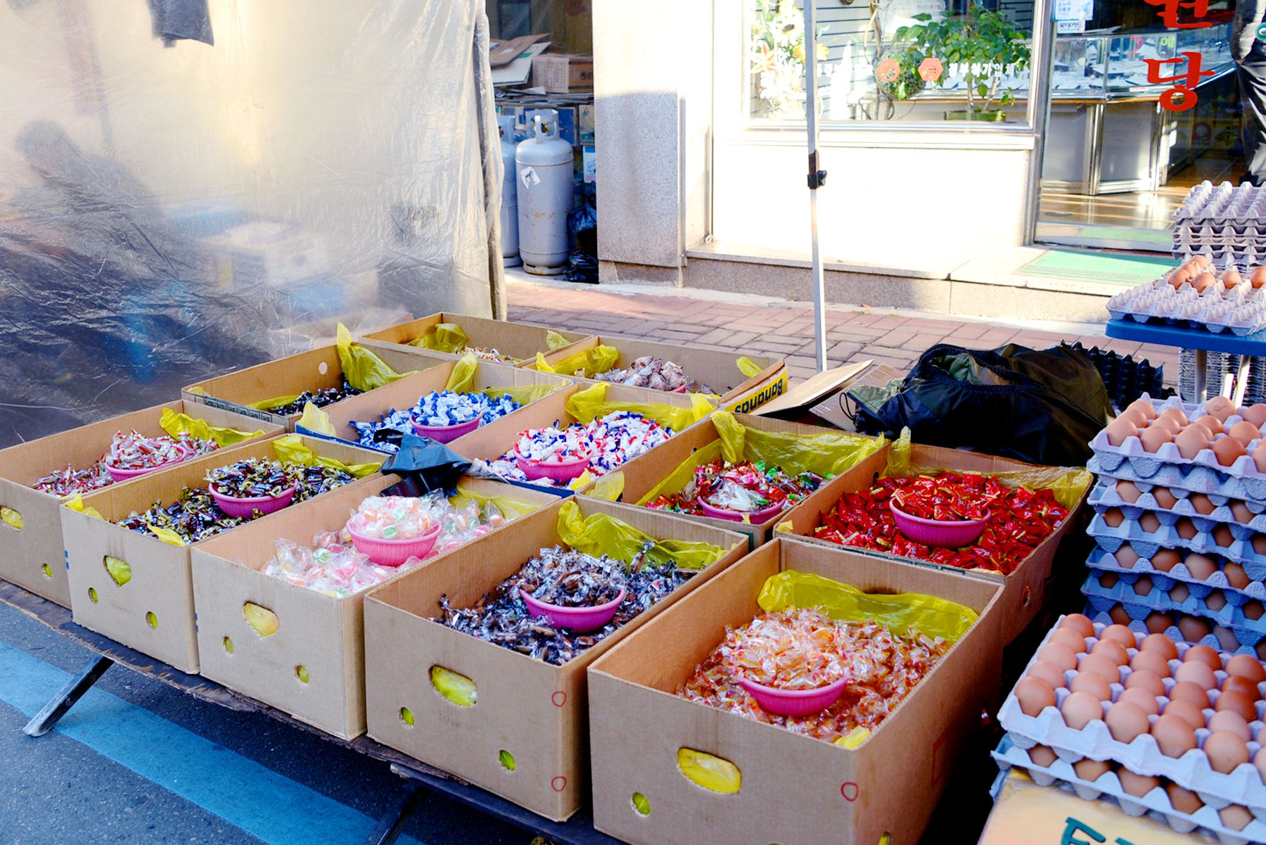 평소에는 상점들이 정상적으로 영업을 하고 장이서는 날에는 자판에 다양한 품목들이 더해져 활기 가득한 시장의 모습을 만나볼 수 있답니다.