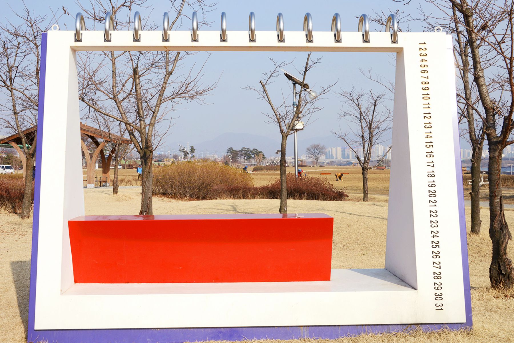 또한,한켠에 위치한 도서관과 탁상달력을 매개로한 벤치조형물은 아주 인기있습니다.