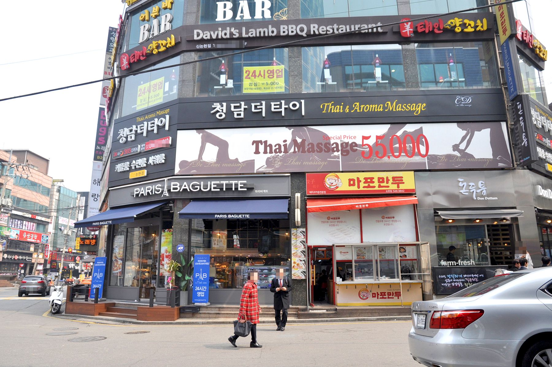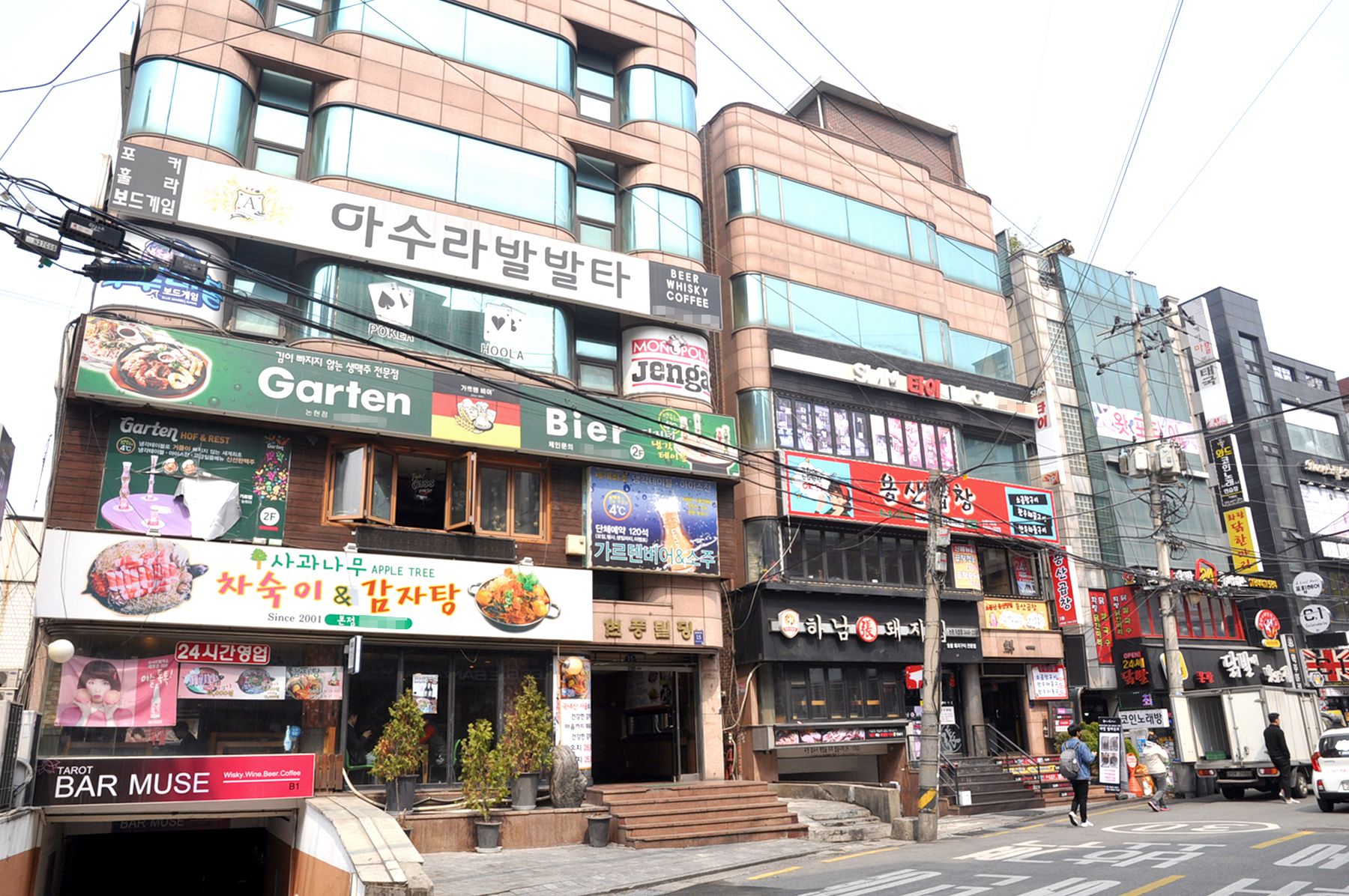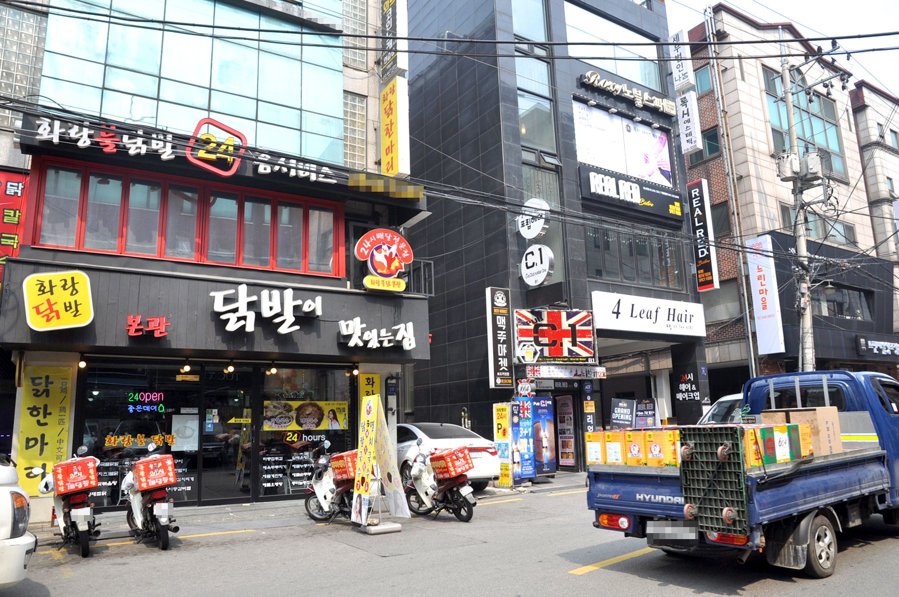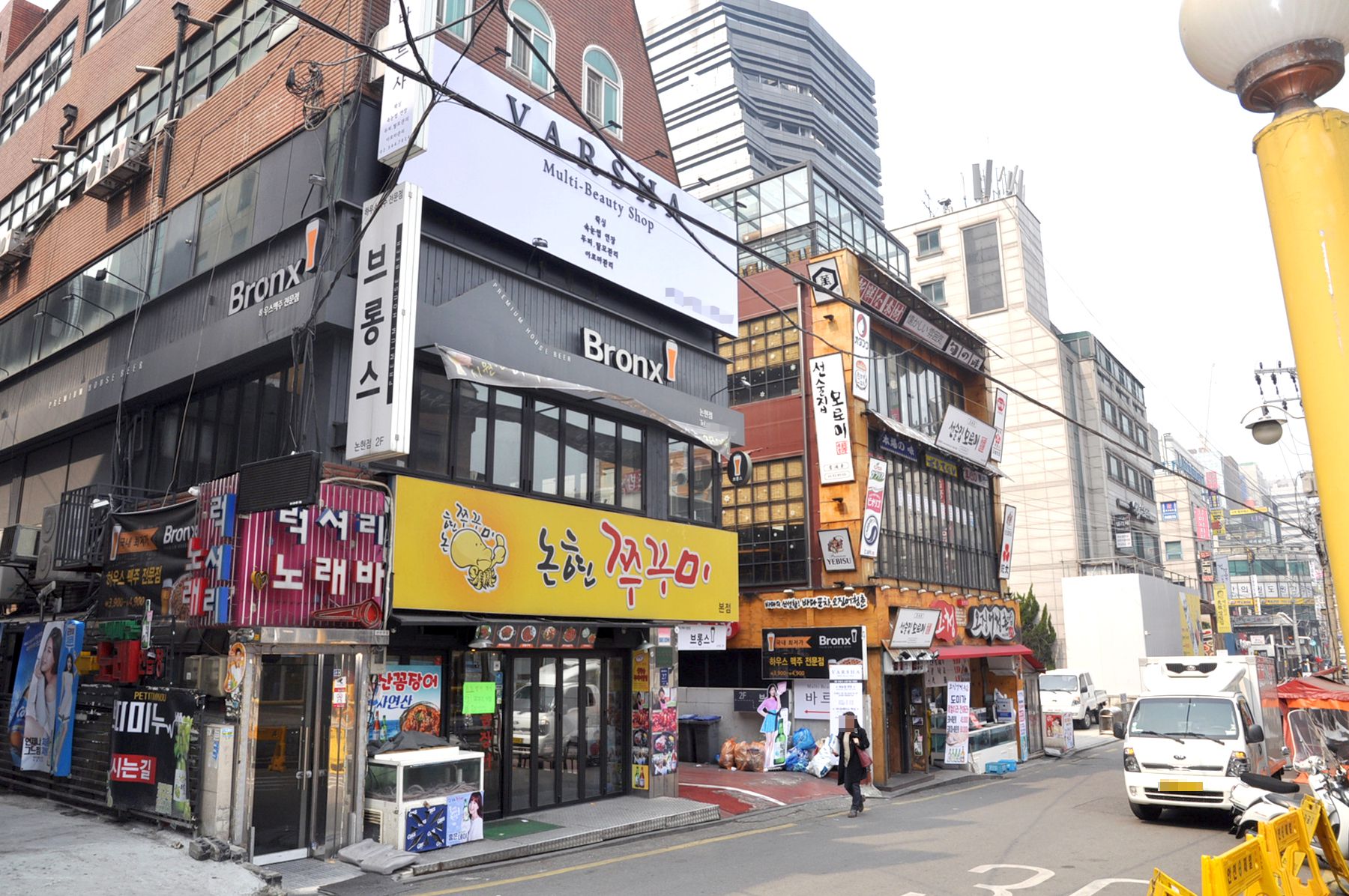 논현먹자골목에 자리한 다양한 메뉴들은 한국을 강타한 프랜차이즈 식당부터