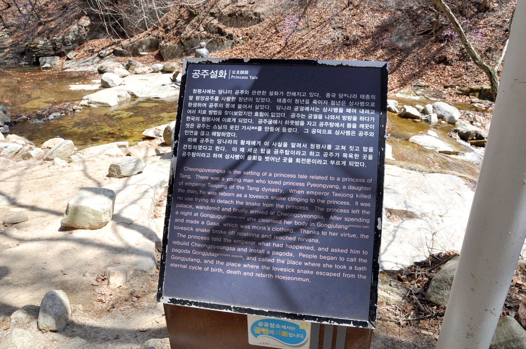 공주탕에서 몸을 씻어 상사뱀은 공주와 인연을 끓고 해탈할 수 있게 되었다 합니다.