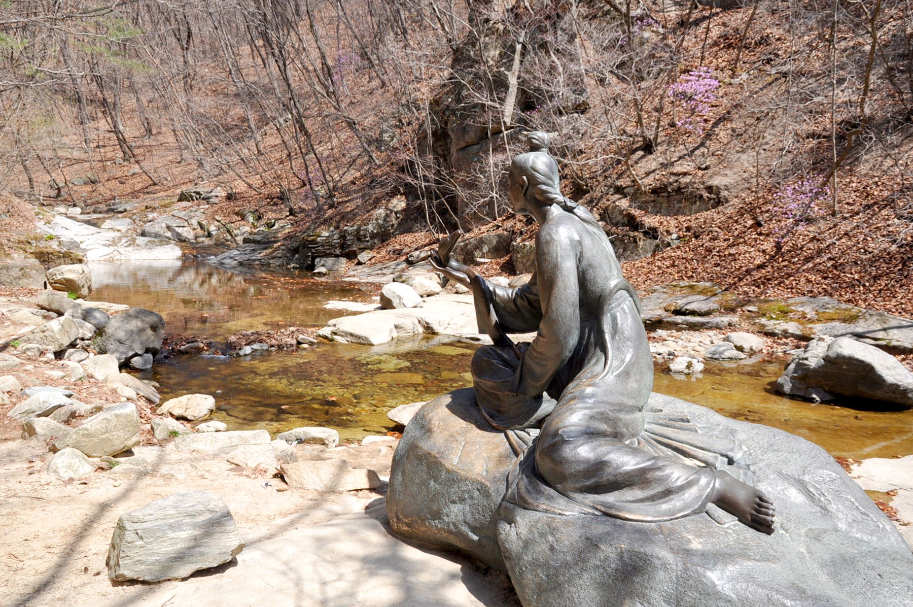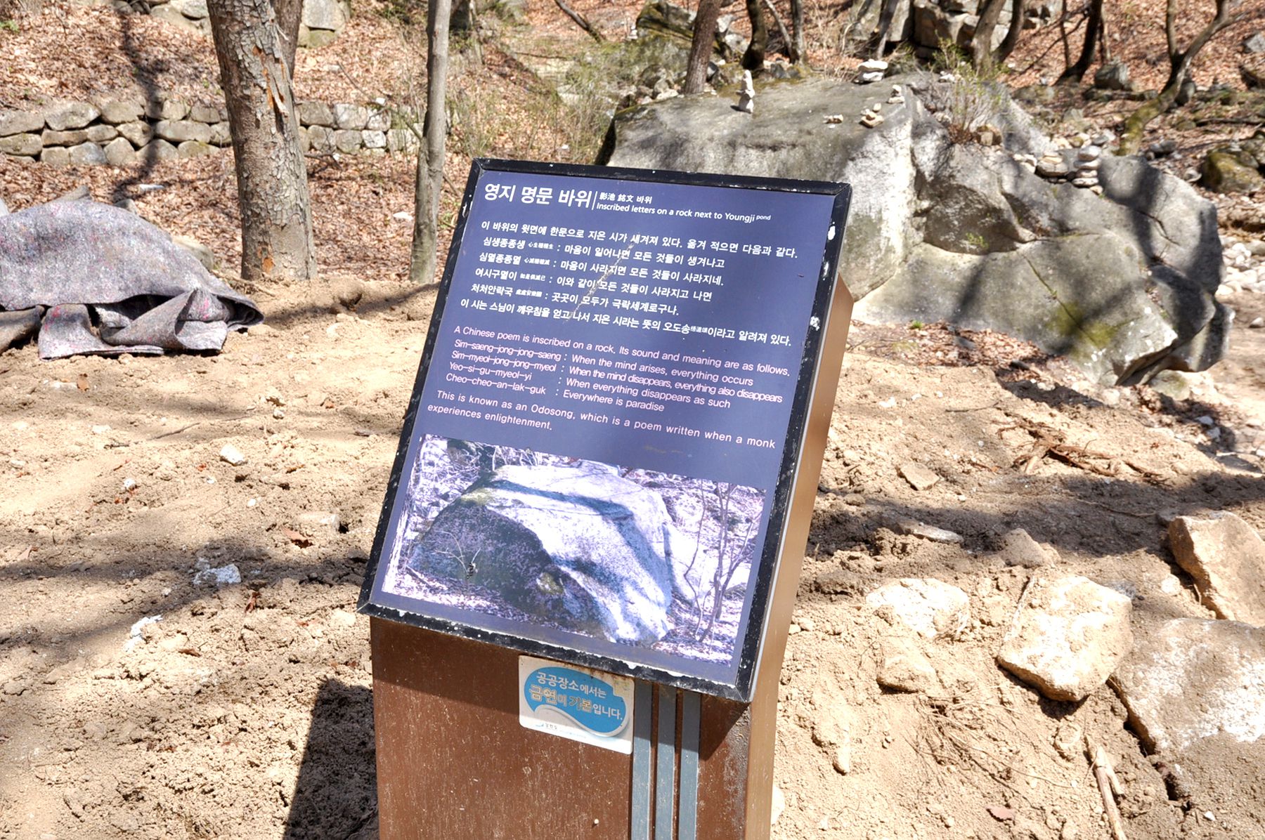 스님께서 지은 오도송이라는 시가 적힌 영지 명문 바위를 지나면 오봉산이 비친다는 영지가 청평사와 가깝게 자리잡고 있는데요,
