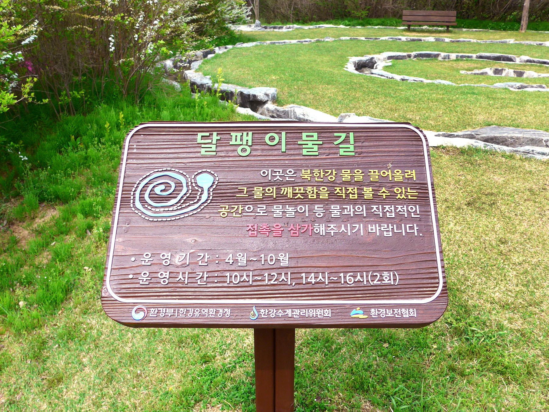 달팽이 모양으로 만들어진 물길은 아이들에게 호기심을 일으키며, 자연체험 학습을 할 수 있는 곳으로