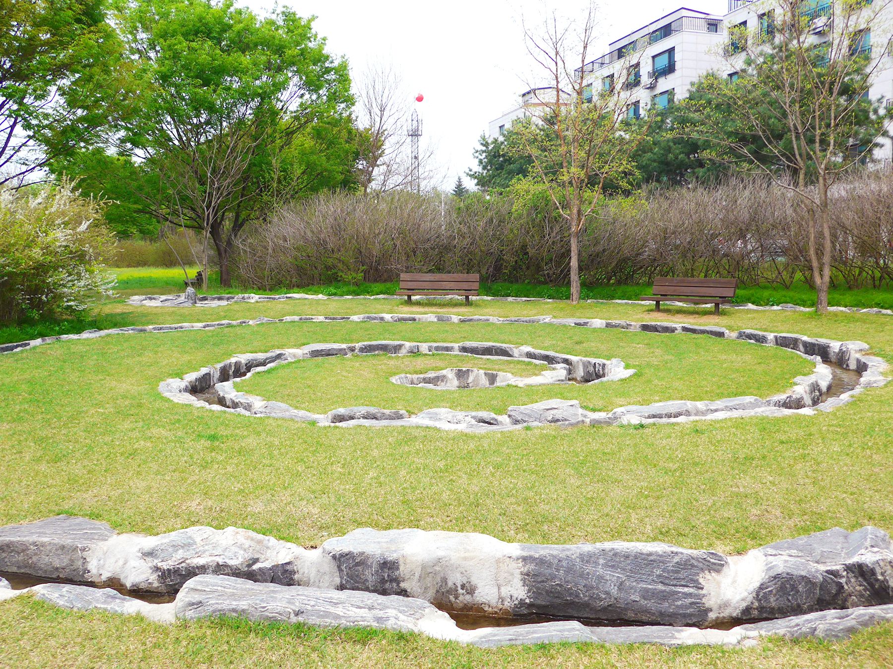 공원안에 있는 달팽이 물길은 북한강에서 끌어올린 깨끗한 한강물로 직접 보고 만질 수 있습니다.