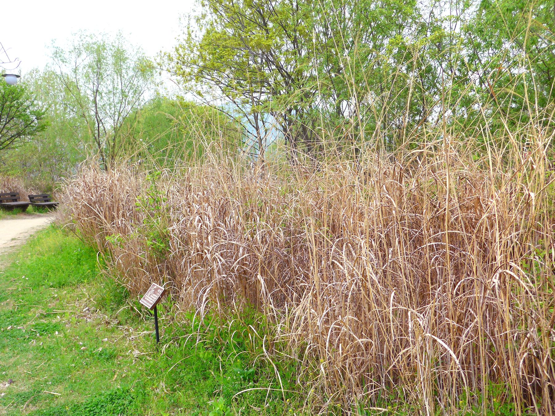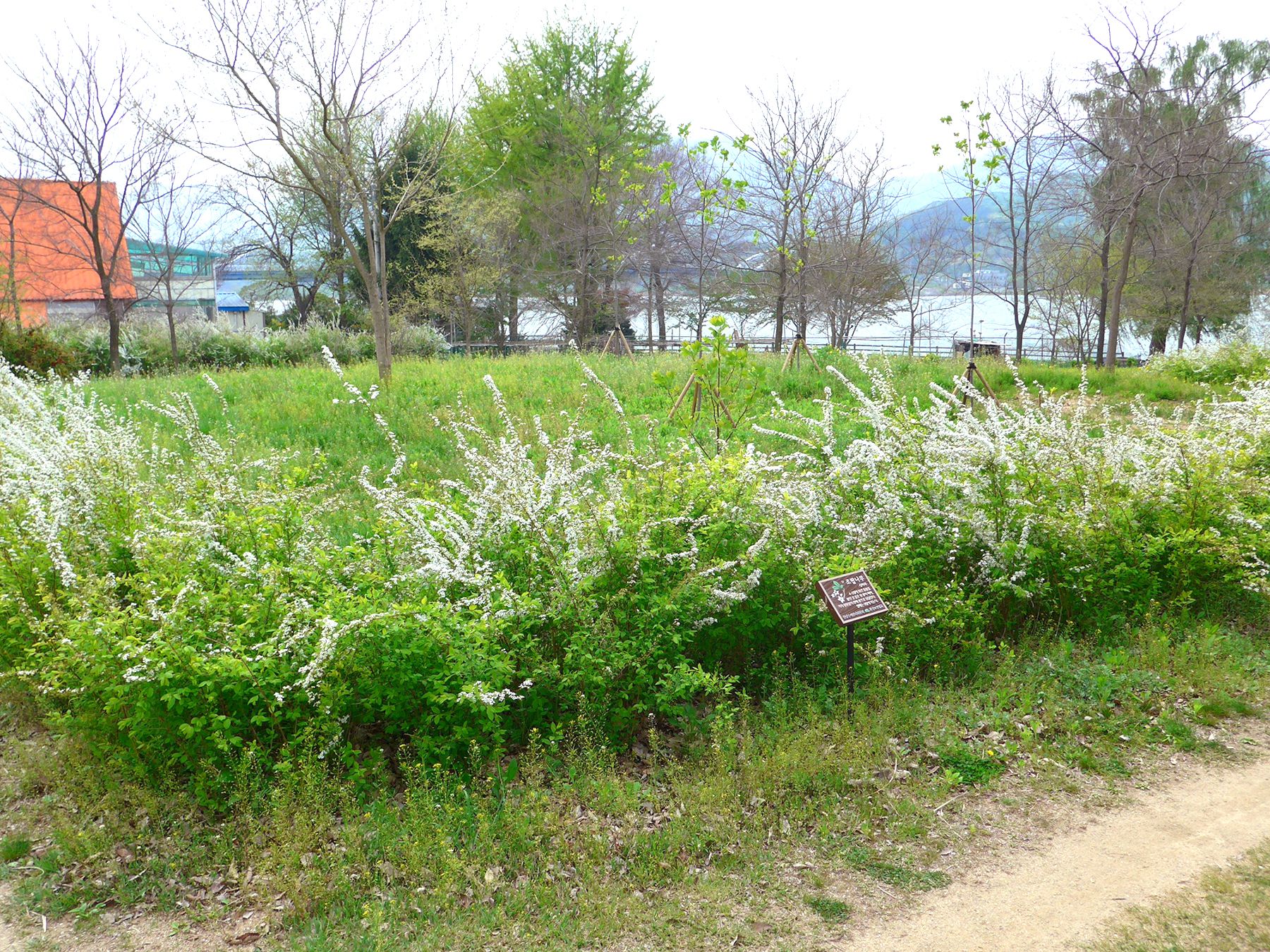 양수리환경생태공원의 산책로에는 하천에 사는 갈대, 물억새 등 수생식물과 조팝나무를 비롯하여 흰말채나무 등이 자리잡고 있어