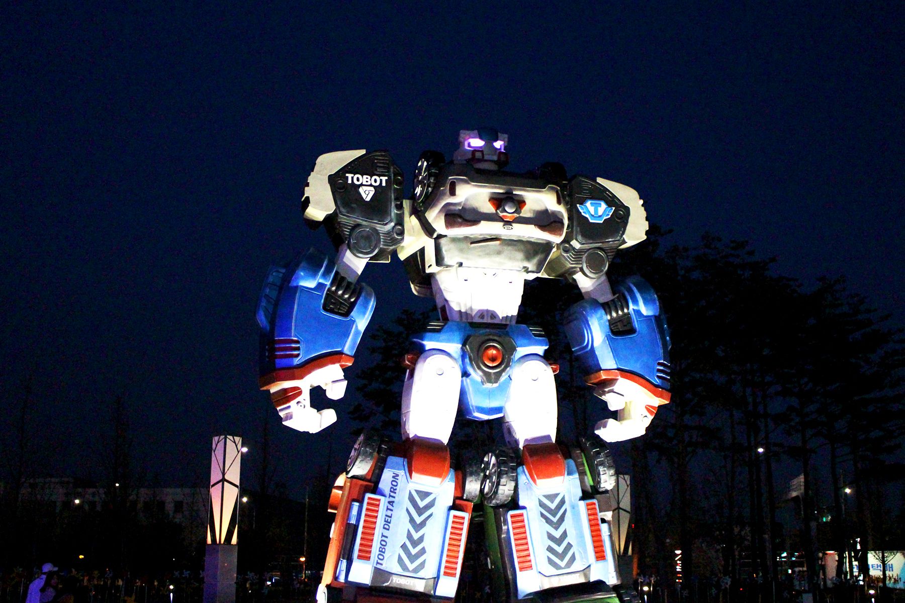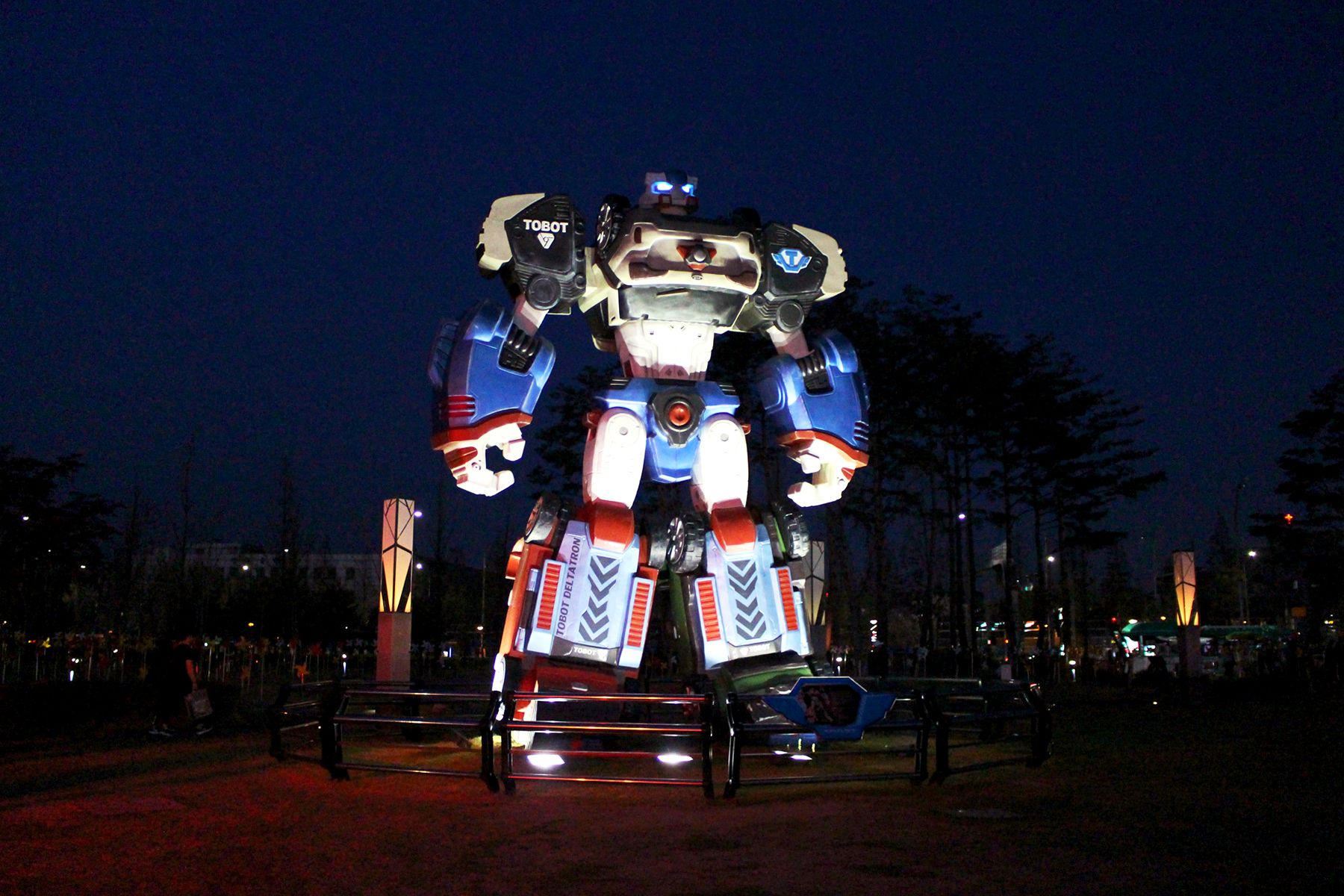 밤이면 델타드론에 빛이 더해지며, 특히 두눈엔 LED조명이 설치되어 더욱 위풍당당한 모습으로 서있어 아이들이 매우 좋아한답니다^^